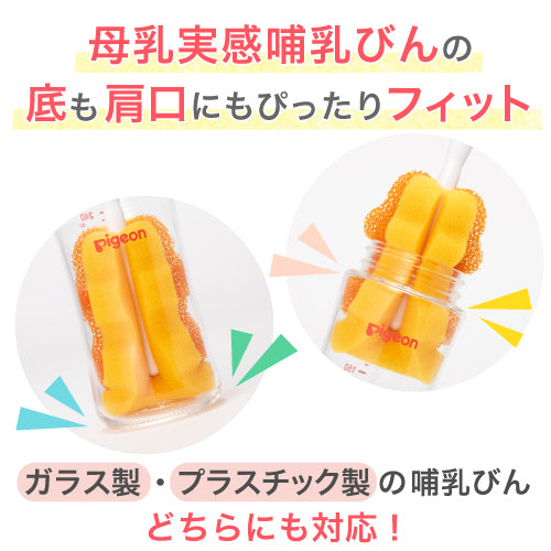 Pigeon Breastfeeding Sponge Brush is a highly effective cleaning tool designed to tackle stubborn stains in hard-to-reach areas, specifically the bottom and neck of breastfeeding bottles. This sponge brush is compatible with all Pigeon feeding bottle varieties, including slim baby bottles and breast milk storage bottles. Its rotating head ensures thorough cleaning even in tight corners, while a dual-layered mesh sponge efficiently eliminates dirt and grime. The brush's robust design adheres to the bottle's interior, allowing for a comprehensive cleaning up to the bottle's neck. Thanks to its durable cuff and sponge shape, it excels at removing persistent stains from the bottle's base.