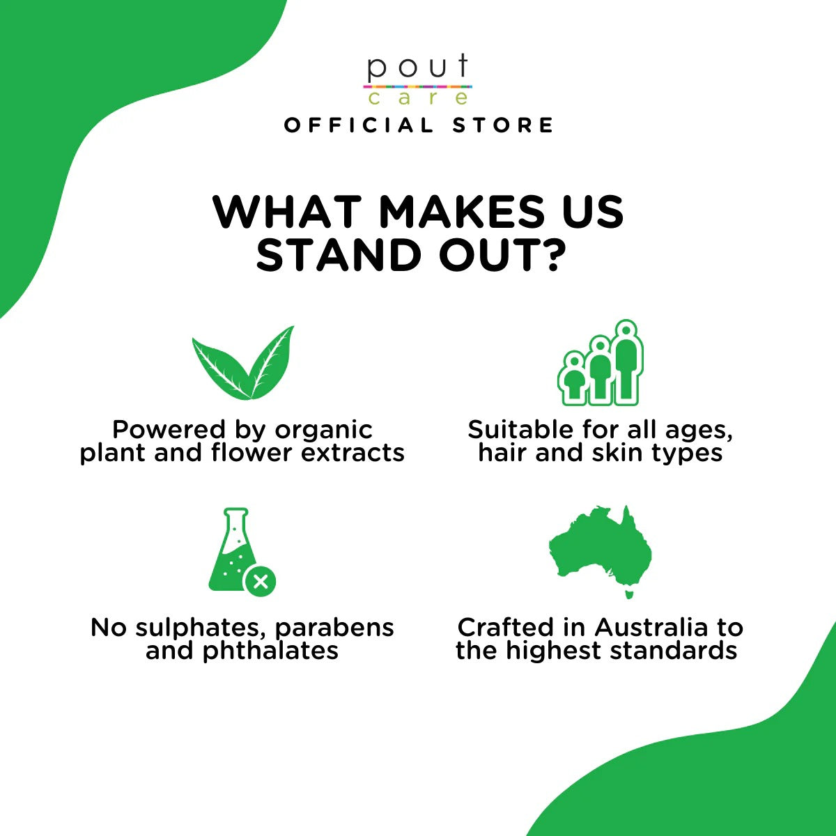 pout Care Festive Splash Kit is a festive bundle that makes the perfect gift this Christmas! It is your compact solution to stay fresh, nourished, and chlorine-free, no matter where you land! Featuring Yuzu Superstar Natural Face & Body Foam (80 ml), Grapefruit Island Swimmers’ Top-to-Toe Wash (75 ml) and Green Apple Whoosh Hydrating Conditioner (75 ml).