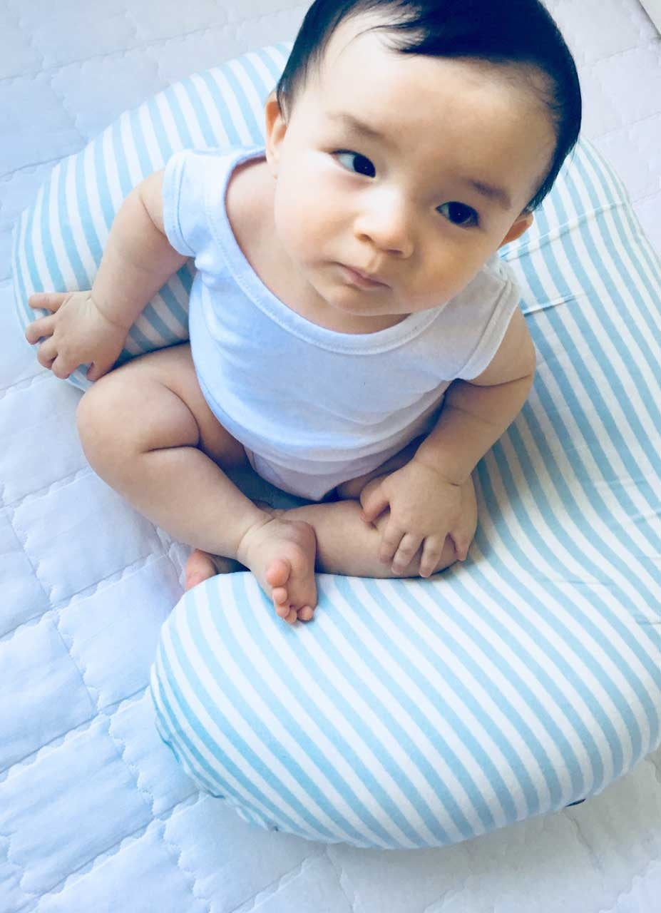 - Older babies can sit inside it, the pillow providing support to their back so that baby learns to sit up steadily