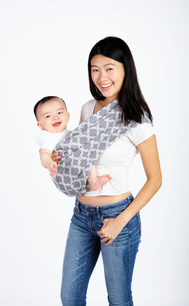 Pupsik baby pouches are all made from stretchable cotton sateen that is soft and comfortable to use. Our stylish pouches come in 4 different sizes to suit the person using the pouch. The same size can be used on the same baby from birth till toddler (professionally tested up to 16kg). You will be changing the carry position of baby in the pouch (from a cradle carry to sitting position) to suit him as he grows.