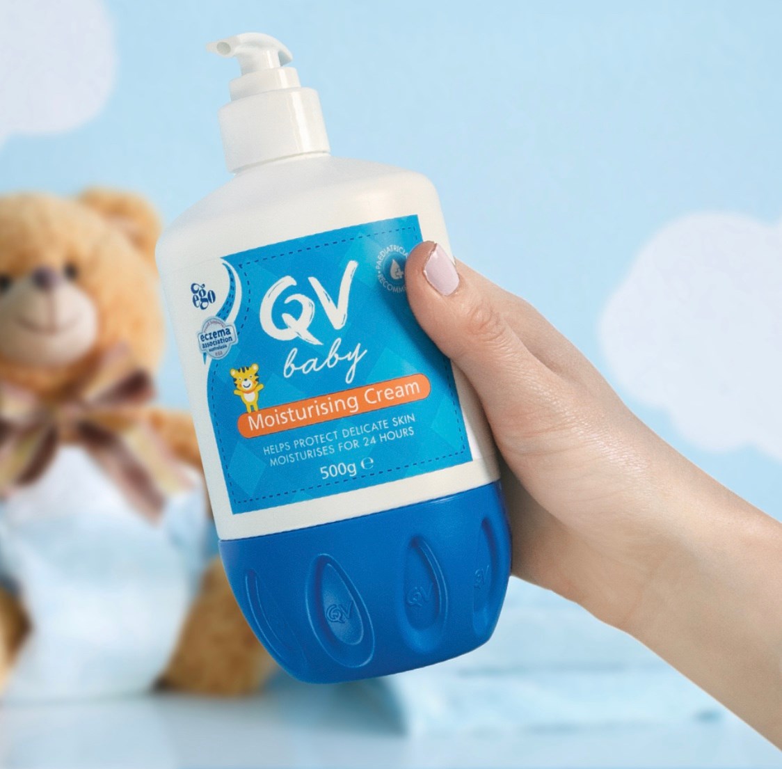 QV Baby Moisturising Cream is a rich and highly-moisturising formulation designed for use with dry, sensitive and delicate skin. Formulated with three types of moisturising ingredients, the non-greasy cream is easily absorbed and provides up to 24hr hydration. QV Baby Moisturising Cream is free from fragrance, colour, Propylene Glycol and Lanolin. It is pH balanced, paediatrician recommended and made in Australia. As proud supporters of the Eczema Association of Australia, this cream is suitable for use with very dry, eczema-prone baby skin.