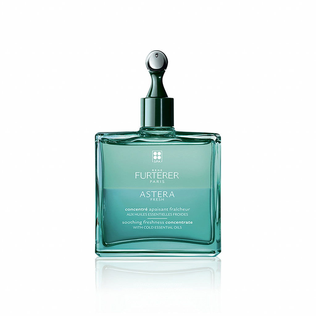 Rene Furterer ASTERA FRESH Soothing Freshness Pre-Shampoo Concentrate is a bi-phase, cooling, pre-shampoo concentrate featuring Asteraceae extract plus Mint and Eucalyptus essential oils to instantly soothe and calm irritated and itchy scalps while helping to reduce inflammation. This premium glass bottle delivers precise dosage for application and features an exclusive targeted scalp massager tip to help increase microcirculation