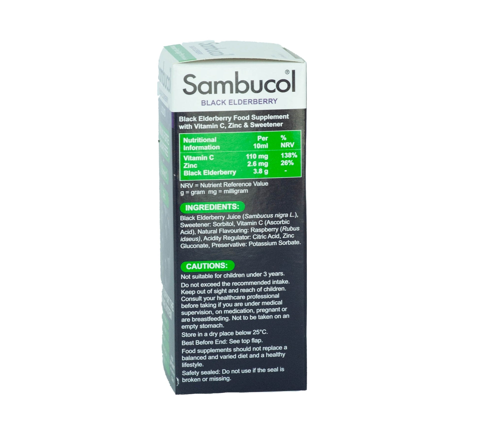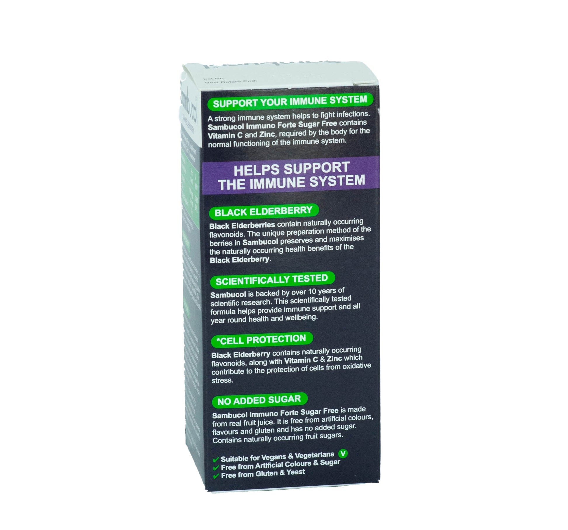 Sambucol Immuno Forte Liquid (No Added Sugar) is a great tasting food supplement packed with black elderberries. Black elderberries contain naturally occurring flavonoids. Sambucol Immuno Forte also contains Vitamin C and Zinc, which are well known for their ability to support the immune system. Sambucol is made from black elderberries which have twice the natural antioxidant capacity of blueberries and more than 50% the overall antioxidant capability of cranberries. Antioxidants strengthen the immune system by helping neutralise the harmful effect of free radicals.