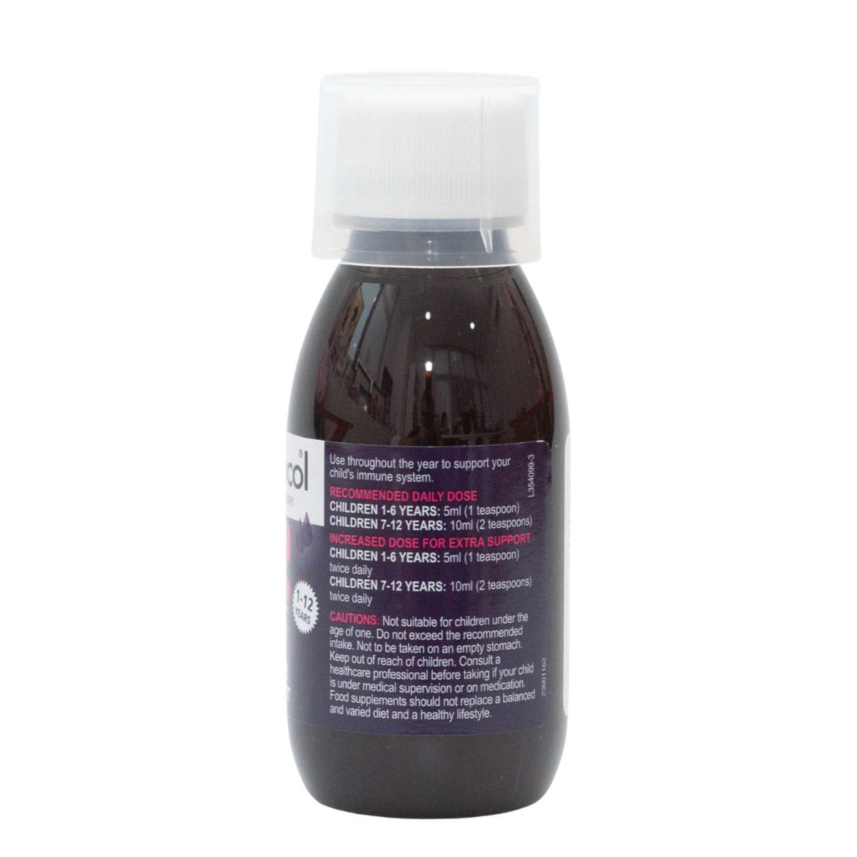Not suitable for children under 1 year. Do not exceed the recommended intake. In the event of a fever or any other persistent condition, consult a healthcare professional. If your child is under medical supervision, please seek medical advice before taking. Keep out of reach and sight of children.