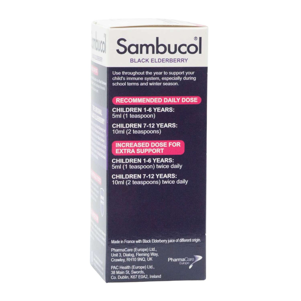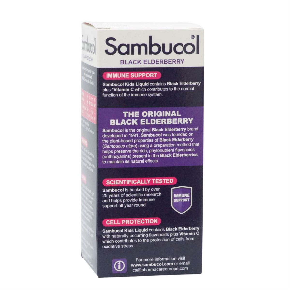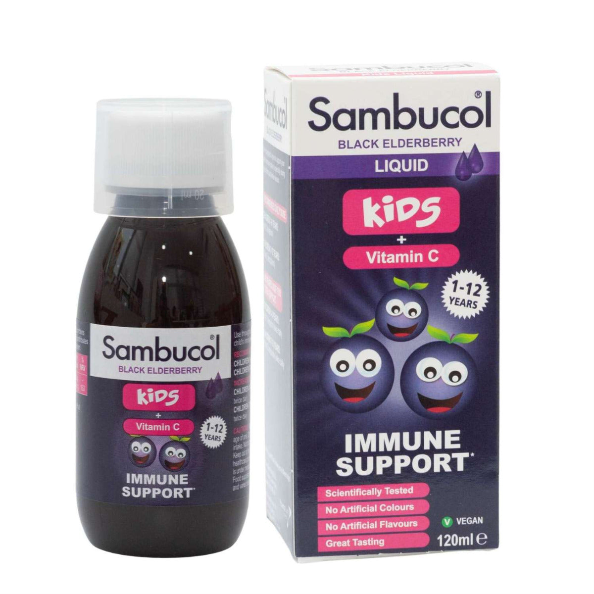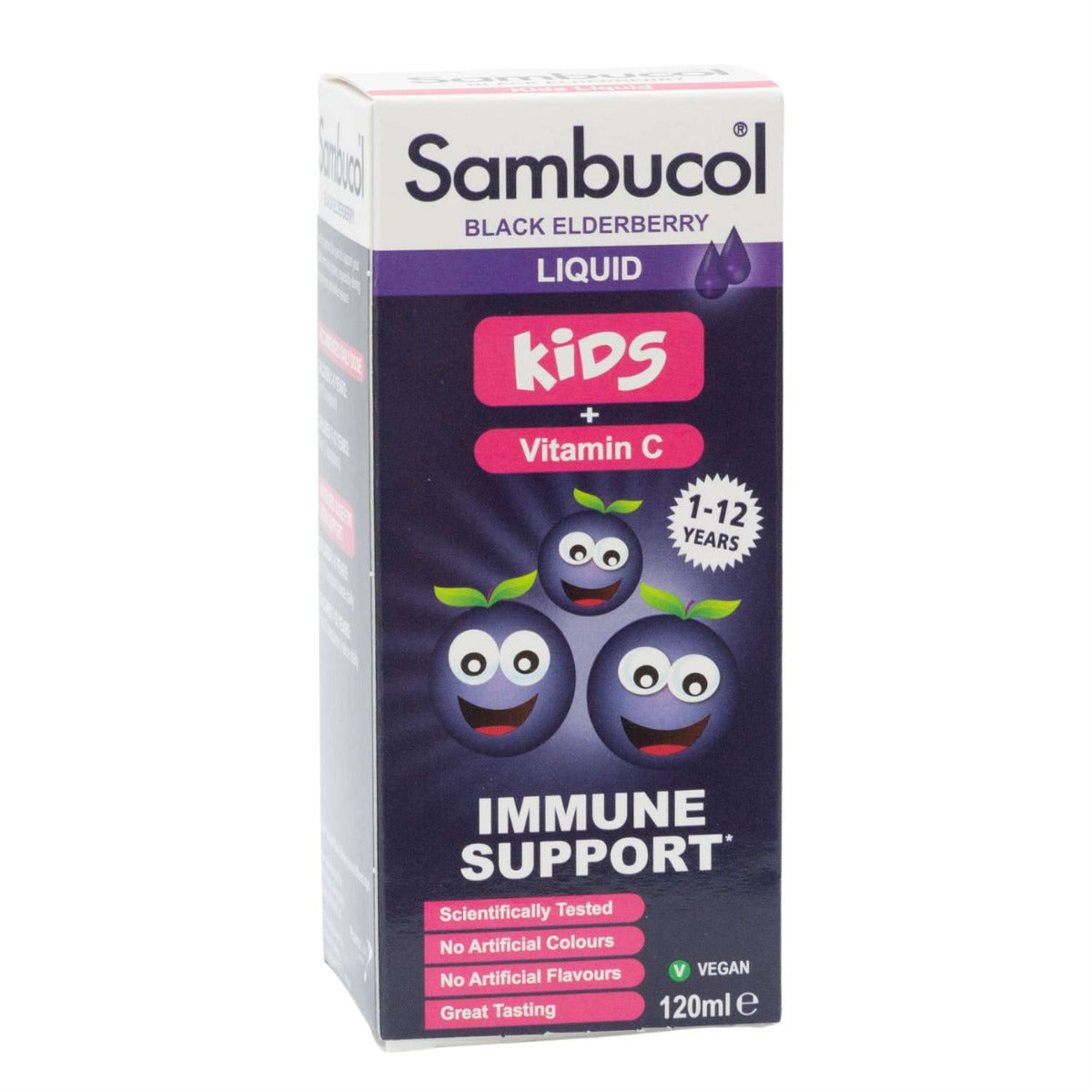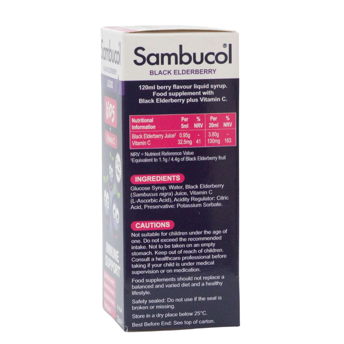 Sambucol Kids Formula Vitamin C (120ml) is a food supplement based on black elderberries, specially formulated for kids to help support their immune system. Black elderberries contain naturally occurring flavonoids and have twice the natural antioxidant capacity of blueberries and more than 50% the overall antioxidant capability of cranberries. The supplement also contains Vitamin C which is well known for their ability to support the immune system. Antioxidants strengthen the immune system by helping neutralise the harmful effect of free radicals.