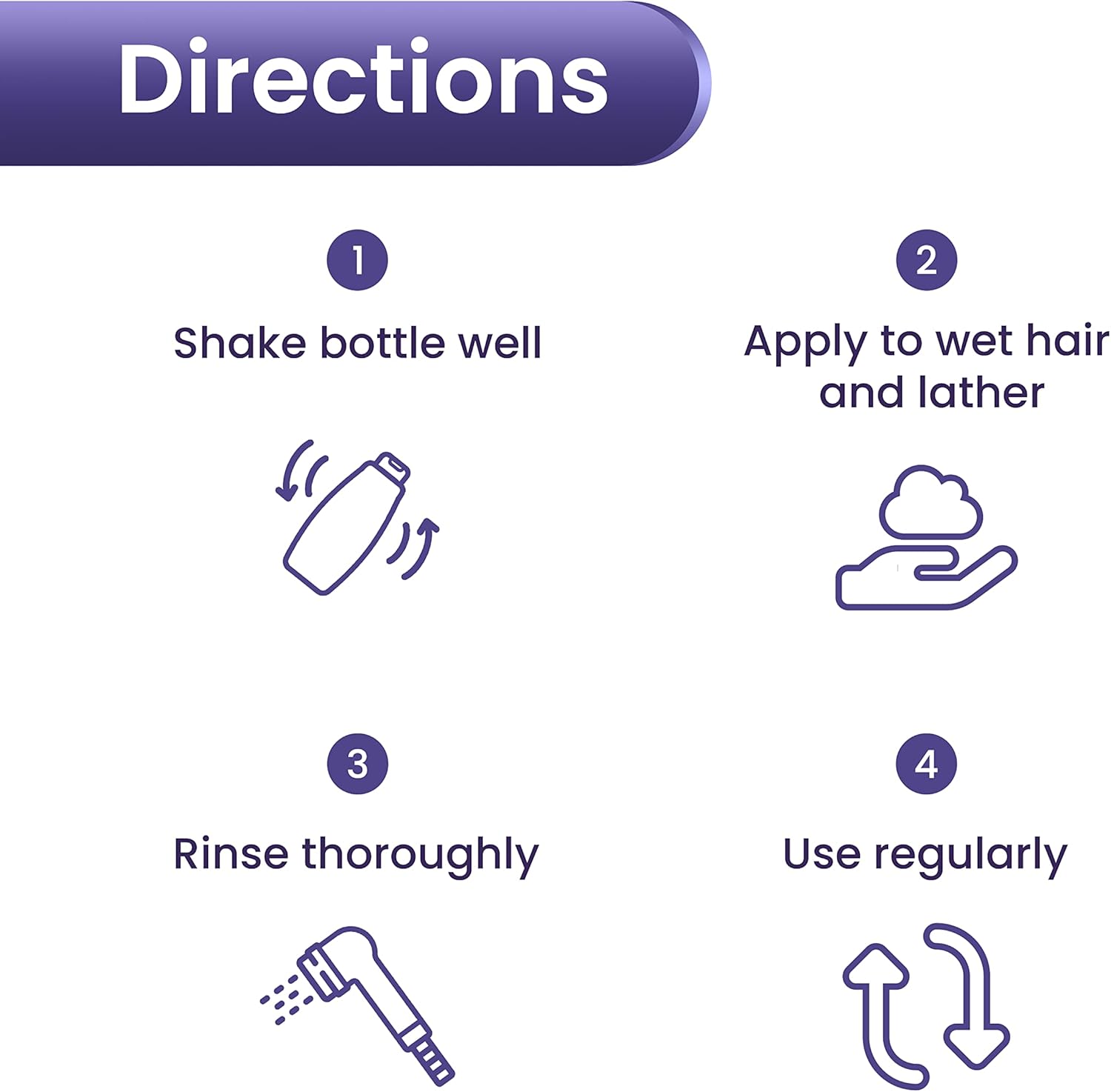 For best results, use regularly. Wet hair thoroughly. Shake bottle well. Lather, rinse thoroughly and repeat.