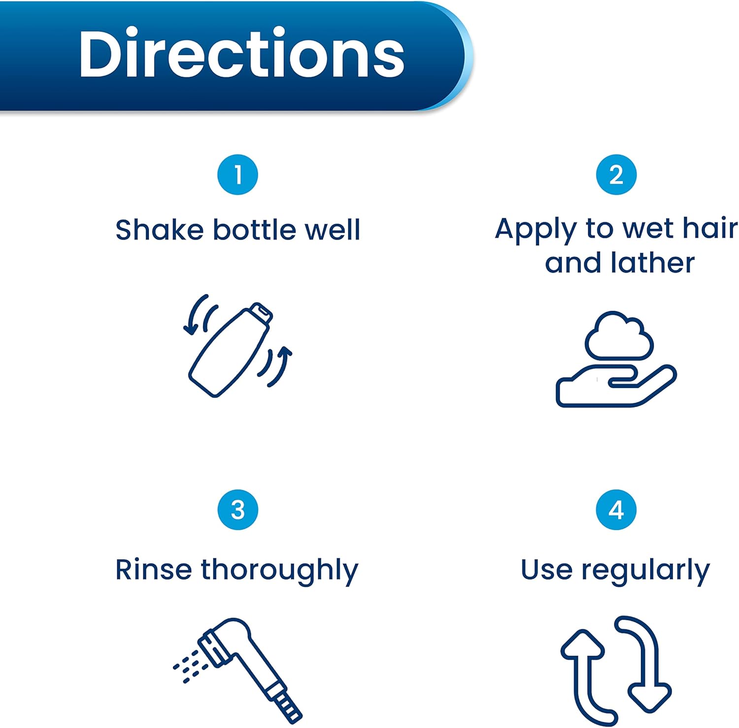 For best results, use regularly. Wet hair thoroughly. Shake bottle well. Lather, rinse thoroughly and repeat.