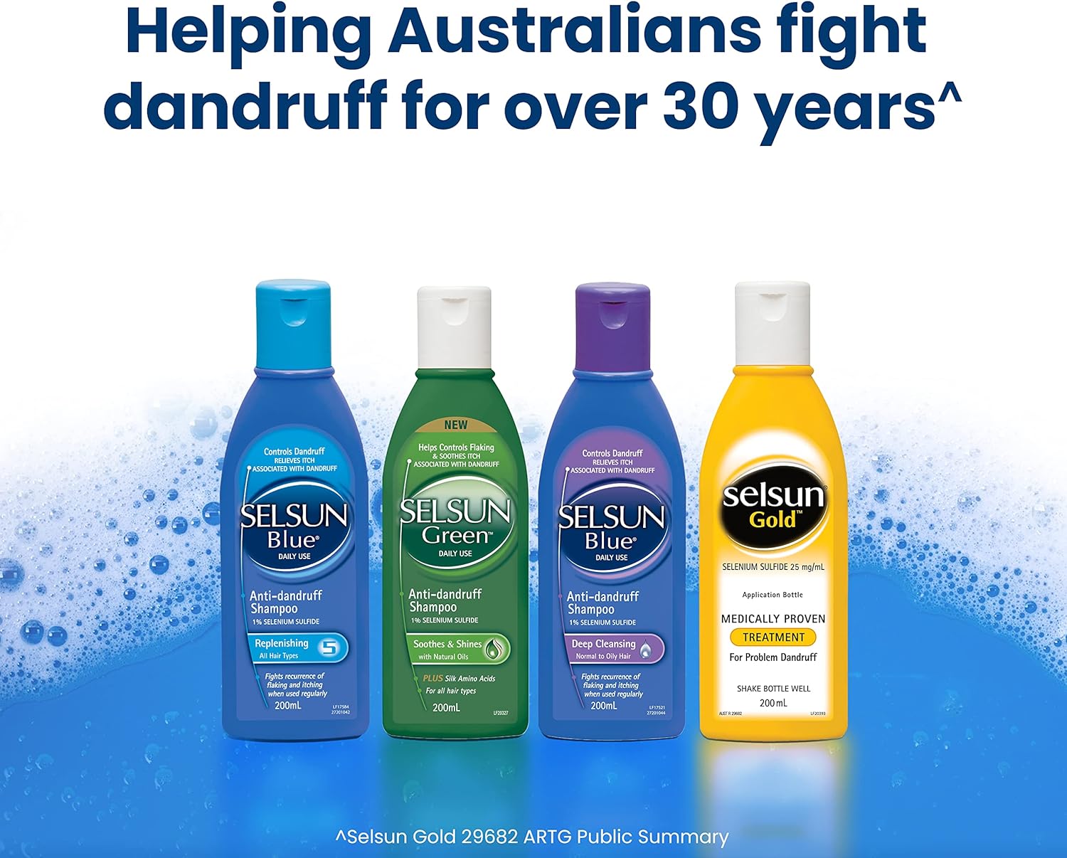 Avoid contact with eyes or damaged skin. For external use only. Rinse thoroughly from the hair before colouring, bleaching or perming. SELSUN Blue should not be used for two days before or after any of these treatments. Avoid contact with jewellery.