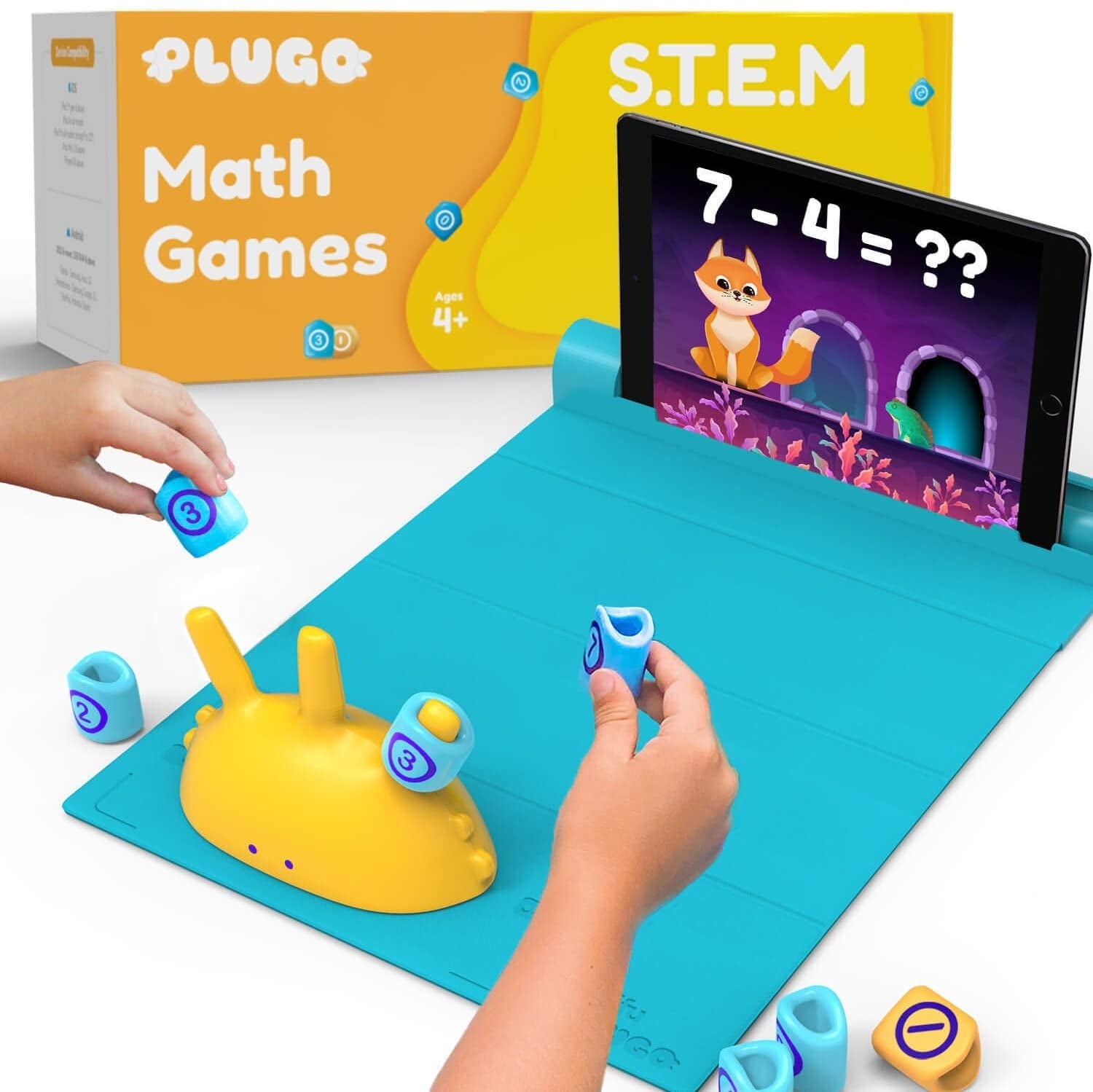 - IN THE BOX - Plugo Count comes with 1 foldable gamepad, 1 Count Spike, 4 arithmetic operators (+ - x/), and 2 sets of digits 0-9. A help guide with step-by-step instructions is also included.