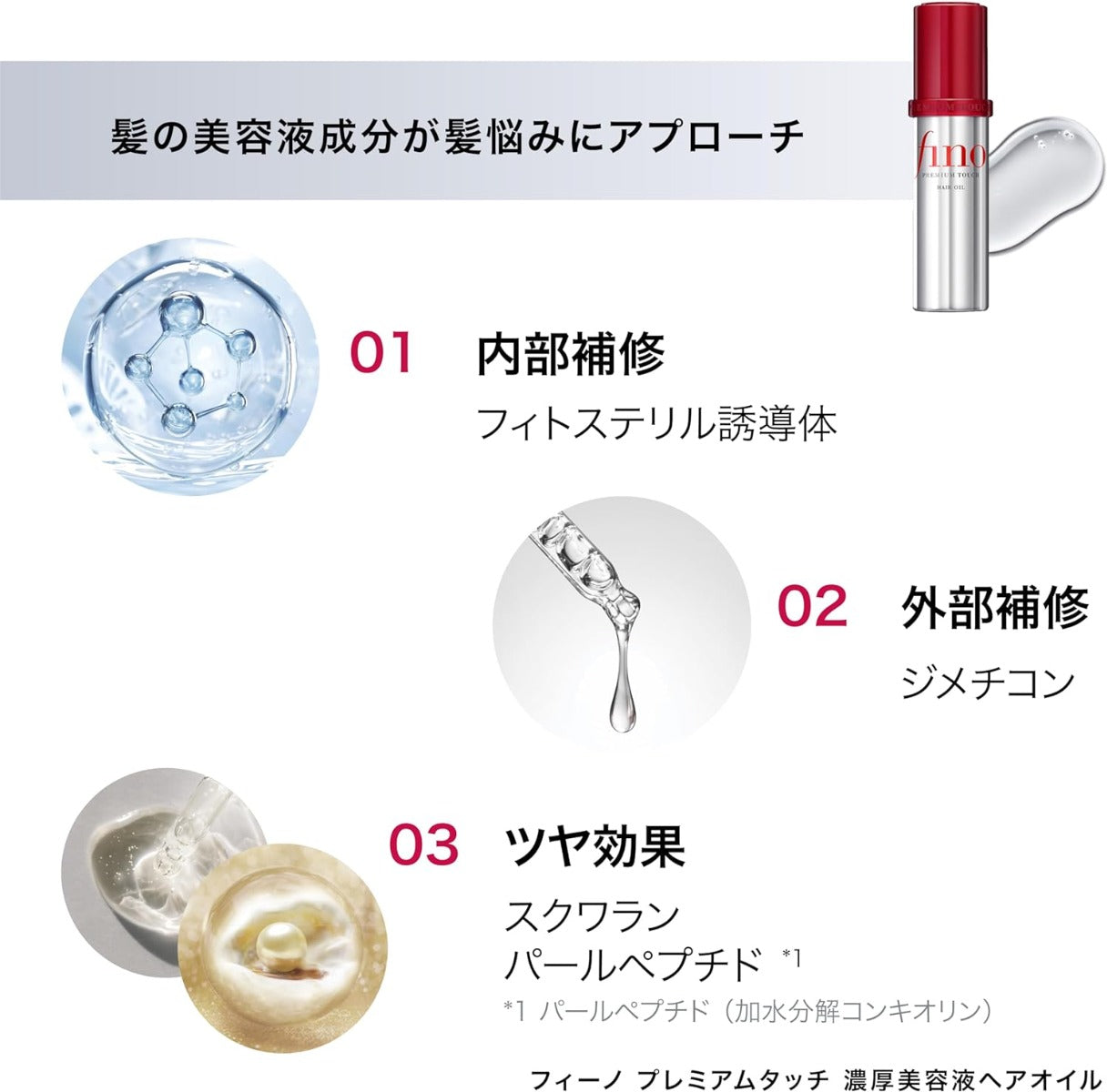 Shiseido Fino Premium Touch Hair Oil is a hair treatment oil that intensively repairs damaged hair. It is suitable for all hair types and penetrates deep into the hair to provide a thorough treatment. The product contains concentrated W oil, which not only repairs but also coats the surface of cuticles to maintain the smooth and silky texture of your hair. The Fino hair oil intensively repairs even the slightest damage, helping your hair to become more healthy and feel smooth. The hair oil itself has a light finish that is not too sticky, and will not leave your hair feeling greasy in the slightest. It also has a refreshing floral scent.