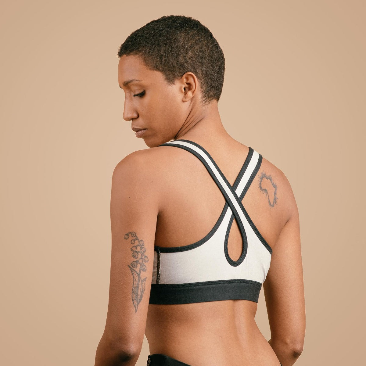 - Strap and back panel designs use powermesh integrated between layers of modal to comfortably retain support over time.