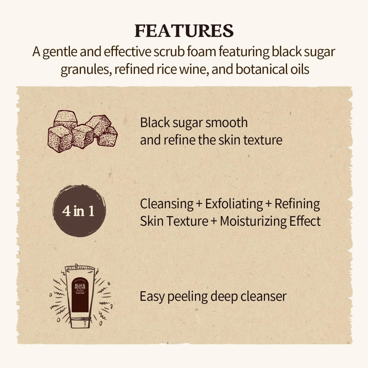 - This is a product containing black sugar that moisturizes and smoothens rough skin texture.