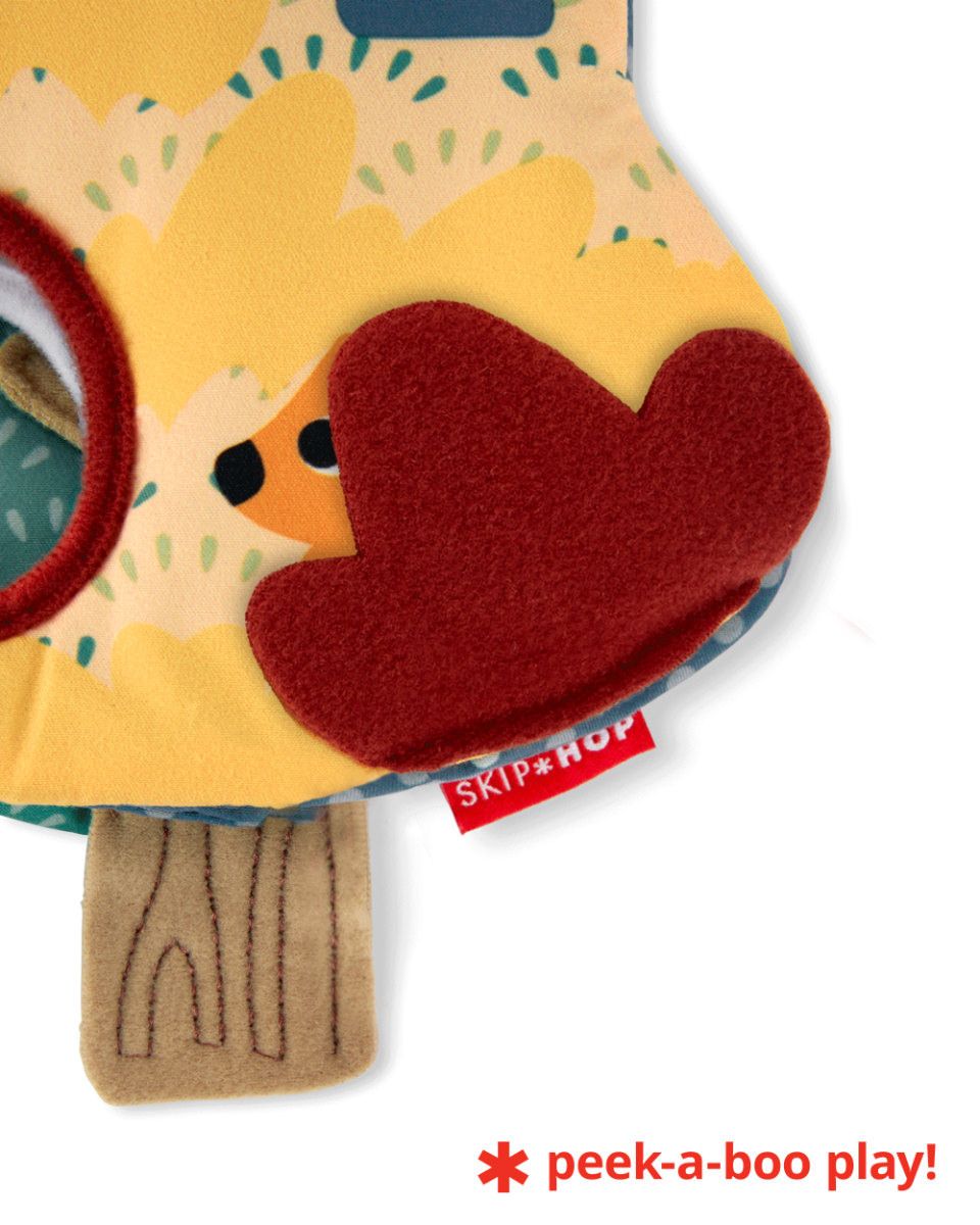 Skip Hop Four Seasons Soft Activity Book introduces baby to the changing seasons with adorable nature-inspired artwork, cute animals, numbers for counting and more. Designed to encourage sensory exploration, each page features crinkle sounds, multiple textures, peekaboo play details, a baby mirror and a teether toy. For extra hide & seek fun, the soft raccoon toy can be popped in & out of the hole in each page.