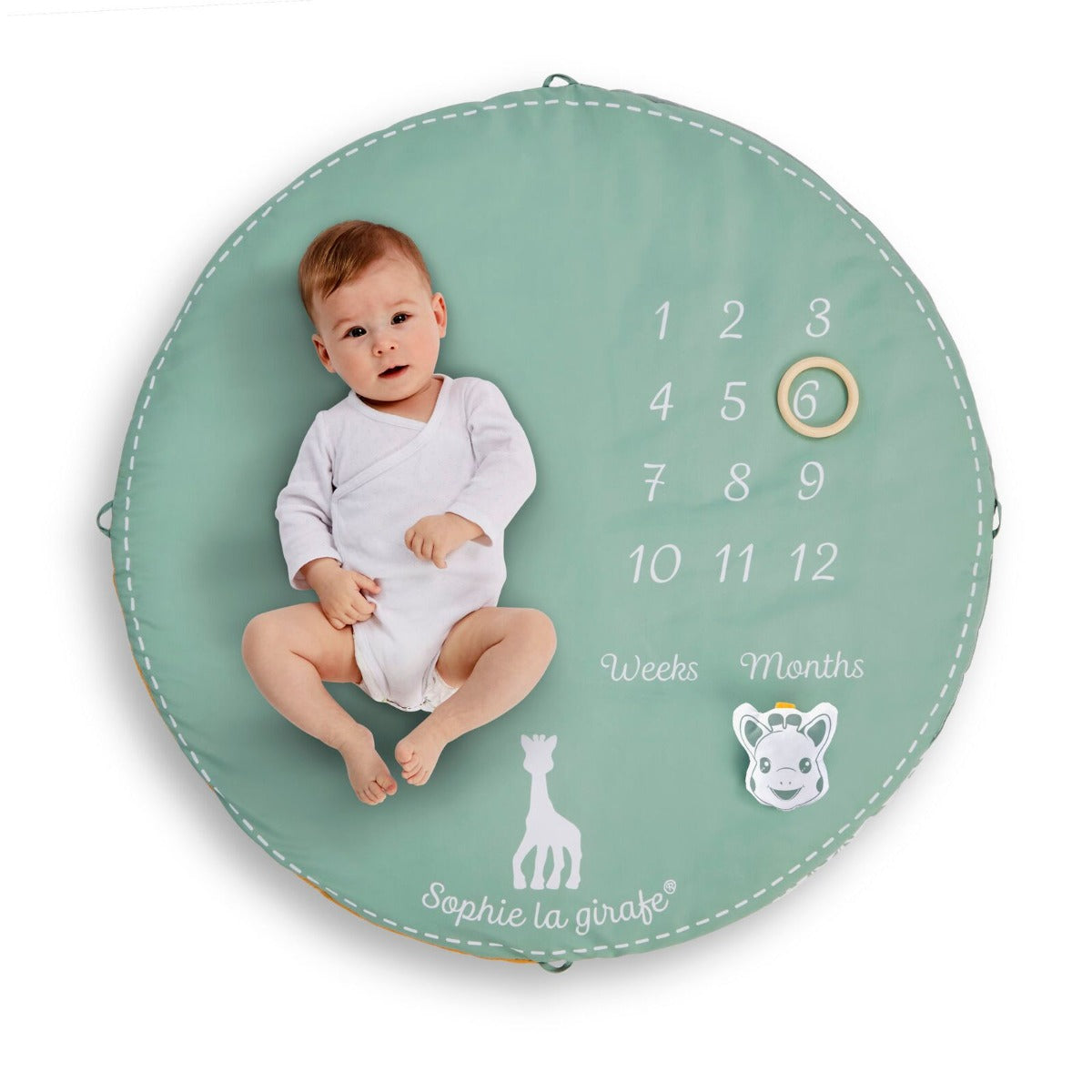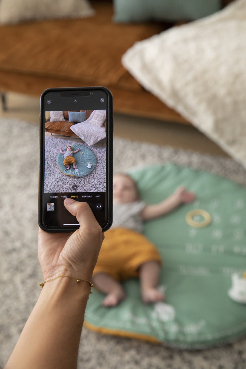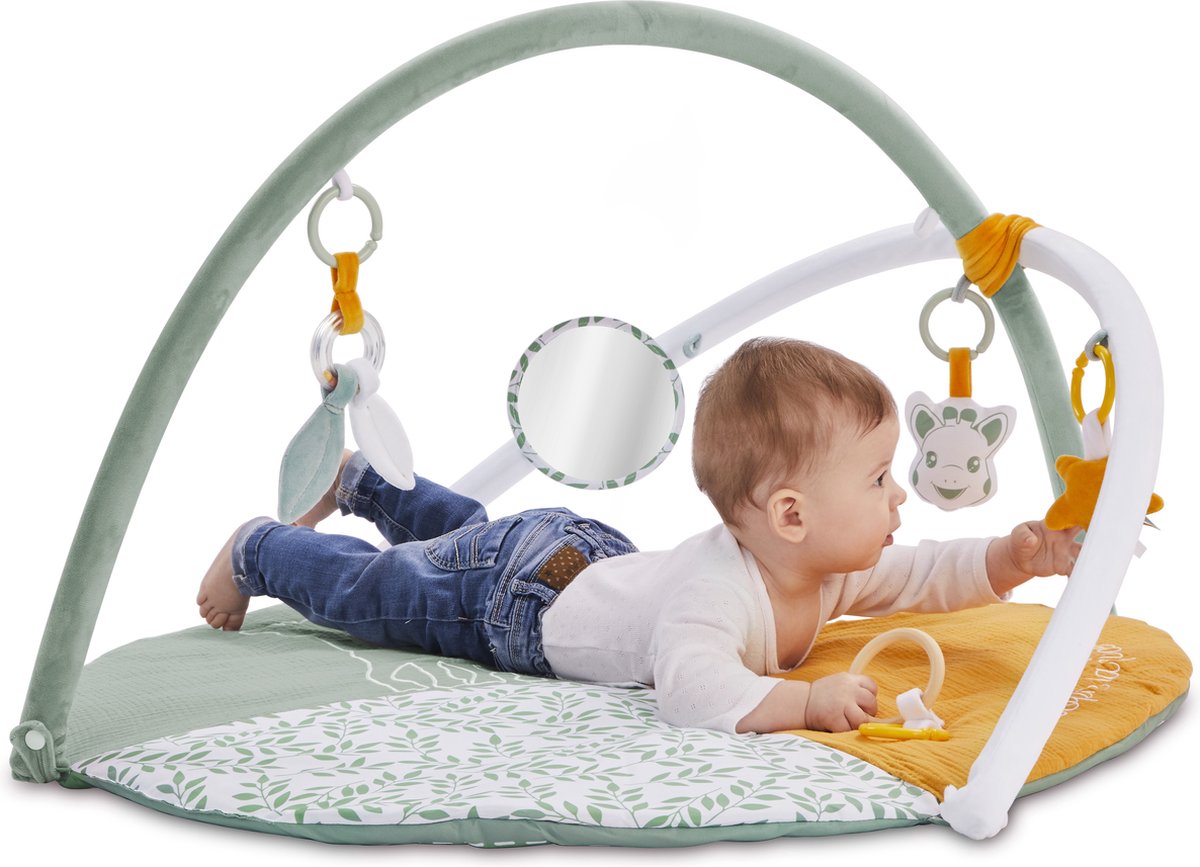 Sophie the Giraffe Reversible Playmat is a 2-in-1 mat with an elegant design and sober colours! An "awakening" side: baby develops his awakening and his motor skills thanks to the many activities that surround him on the arches and on the carpet: mirror, bell, teething ring, crumpled paper. The 2 adjustable angles allow you to change the position of the activities to encourage the baby to turn his head, change position, build muscles and develop his motor skills. A " photo" side: to follow and photograph baby's evolution, week after week / month after month, and keep beautiful memories of each moment!
