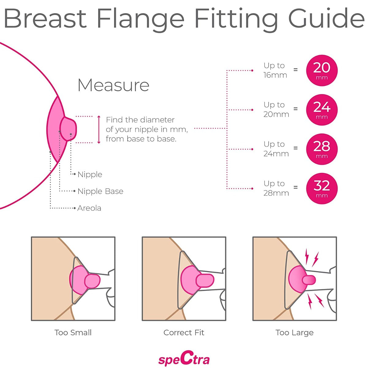 Please choose the correct set based on the Spectra flange size which needs to be fitted accordingly to measured nipple size. Wash Spectra pump parts after each use with warm soapy water and rinse well. Do not wash tubing.