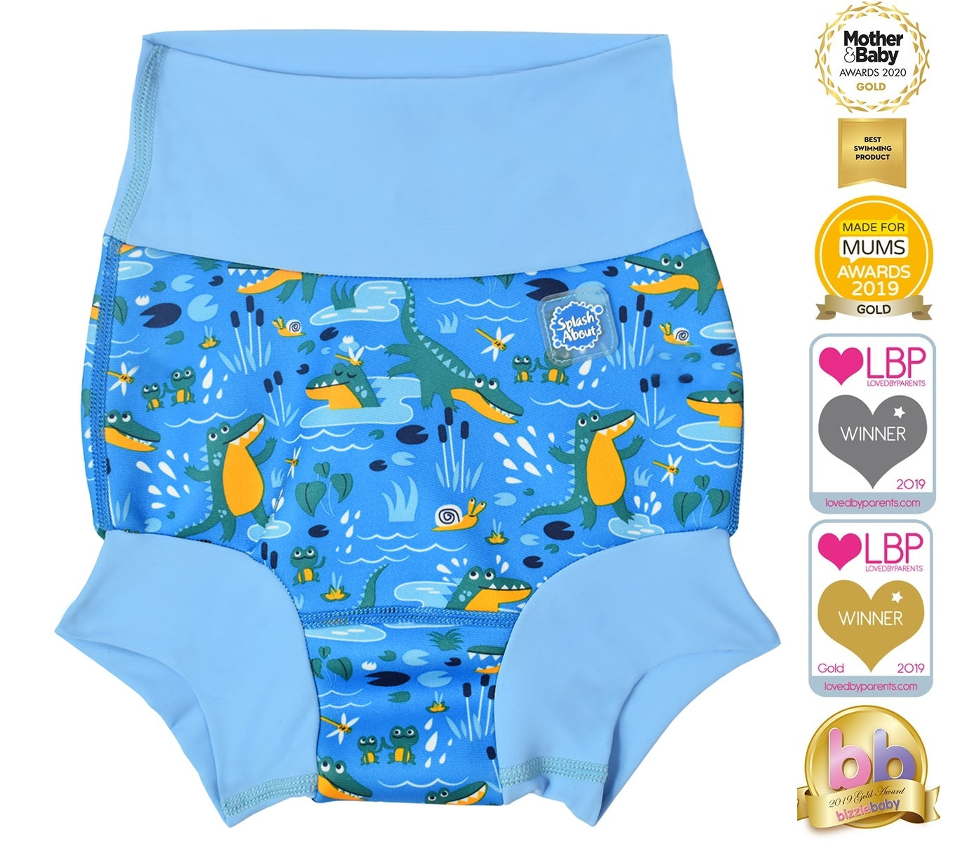 The Happy Nappy by Splash About is an innovative reusable swim nappy that reliably protects against faecal leaks into the water. Ergonomically designed to move with the baby as they kick and move about in the water, the Happy Nappy is shaped to cup baby’s bottom, whilst specialist waist and thigh ribs fit snugly to the child’s body, forming a seal that prevents any solids leaking out.