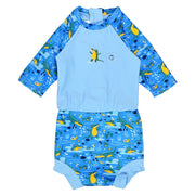 - 2-in-1 full body sunsuit with Happy Nappy Swim Diaper and in-built Rash Top
