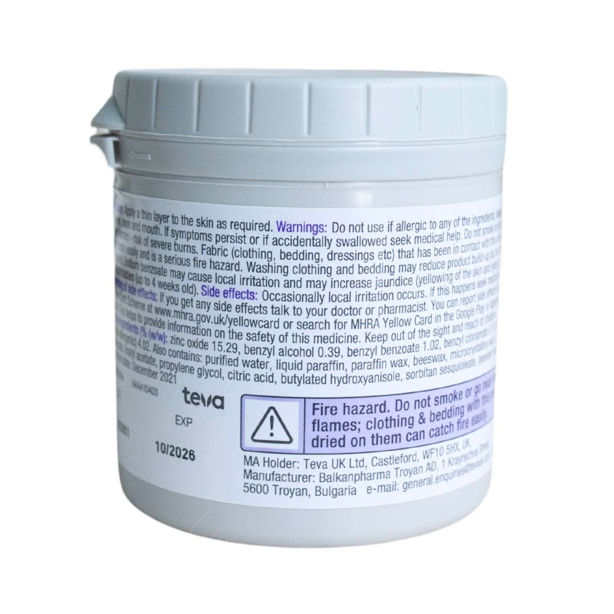 Zinc Oxide Ph. Eur., Benzyl Alcohol B.P., Benzyl Benzoate B.P., Benzyl Cinnamate, Lanolin, Purified Water, Liquid Paraffin, Paraffin wax, Beeswax, Micrcocrystalline wax, Sodium Benzoate, Linayl Acetate, Propylene Glycol, Citric Acid, Butylated Hydroxyanisole, Sorbitan Sesquioleate, Lavender fragrance.