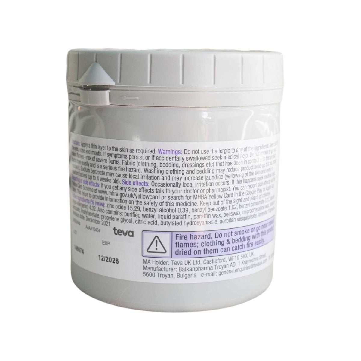 Zinc Oxide Ph. Eur., Benzyl Alcohol B.P., Benzyl Benzoate B.P., Benzyl Cinnamate, Lanolin, Purified Water, Liquid Paraffin, Paraffin wax, Beeswax, Micrcocrystalline wax, Sodium Benzoate, Linayl Acetate, Propylene Glycol, Citric Acid, Butylated Hydroxyanisole, Sorbitan Sesquioleate, Lavender fragrance.