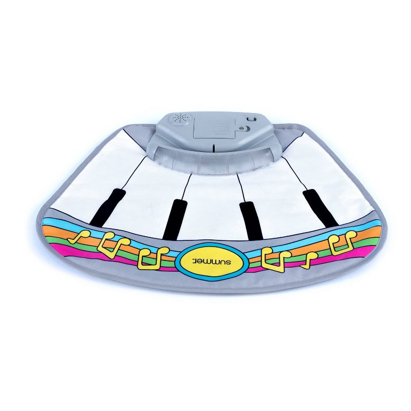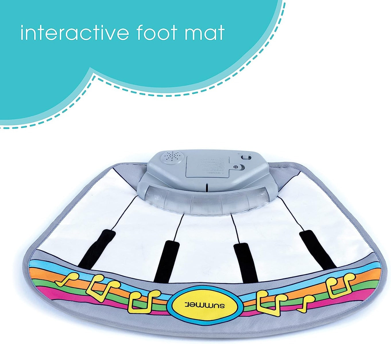 - Toddlers can use their feet to play five different tunes, music notes, and percussion sounds, with fun blinking lights that move to the beat!