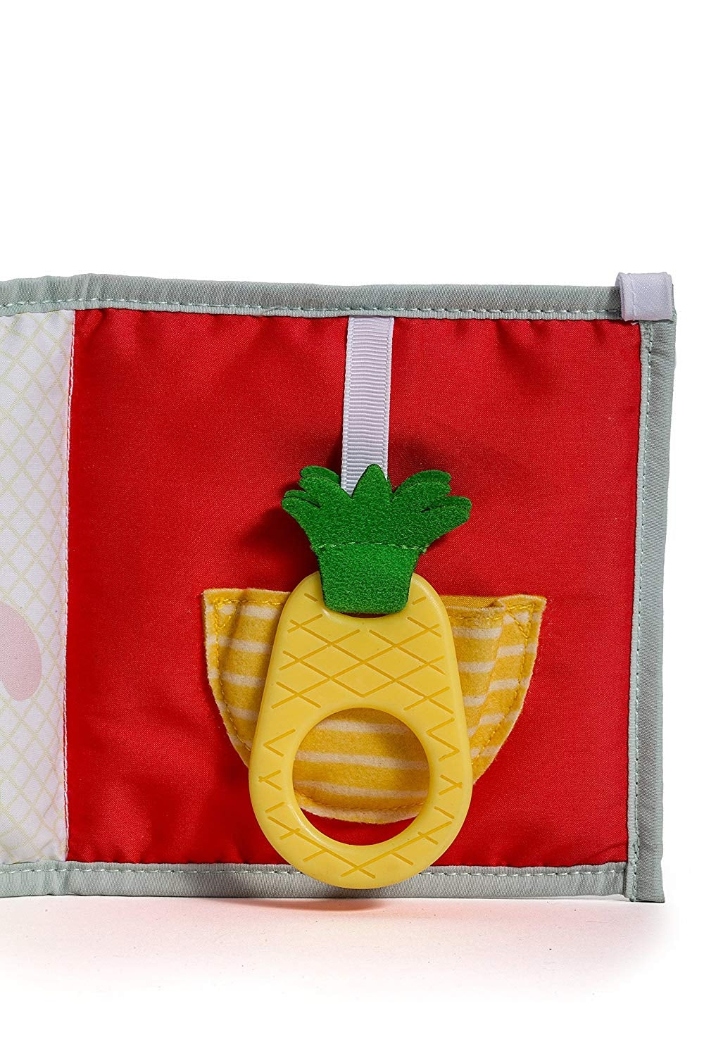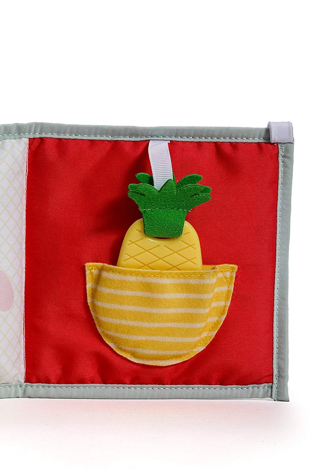 The soft book is equipped with baby-safe mirror and crinkling shaped toys. Pineapple Teether toy and play pocket will sure to attract baby’s attention and will keep your baby busy playing and enjoying.