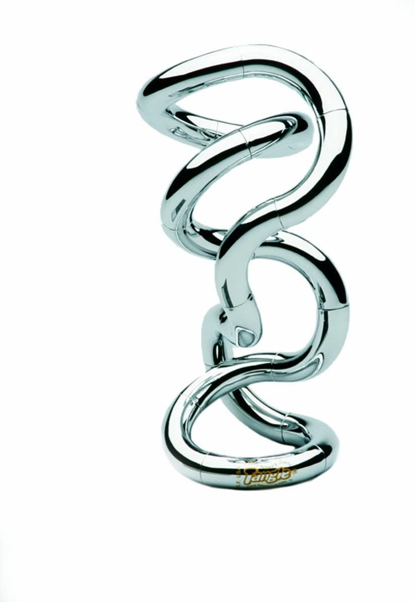The Chrome Original Tangle is sculptural art that move. Its essence is derived from the concept of infinite energy and was inspired by the Tibetan Infinite Knot. With its sleek and fluid design, this Tangle reminds the viewer of being in a modern museum. Tangle is also art that heals and is used for a wide variety of reasons: from lowering anxiety to movement and sensory stimulation. Tangle Original Chrome everywhere illuminating the infinite power of creativity: Doctors' and Therapists' offices and waiting rooms Modern desk toys Interior designers Film and Photography shoots Sold in the Museum of Modern Art Design Store and many other museums.