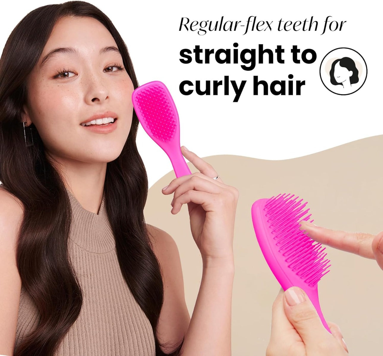 - Regular-flex teeth that gently detangle all types of straight to curly hair