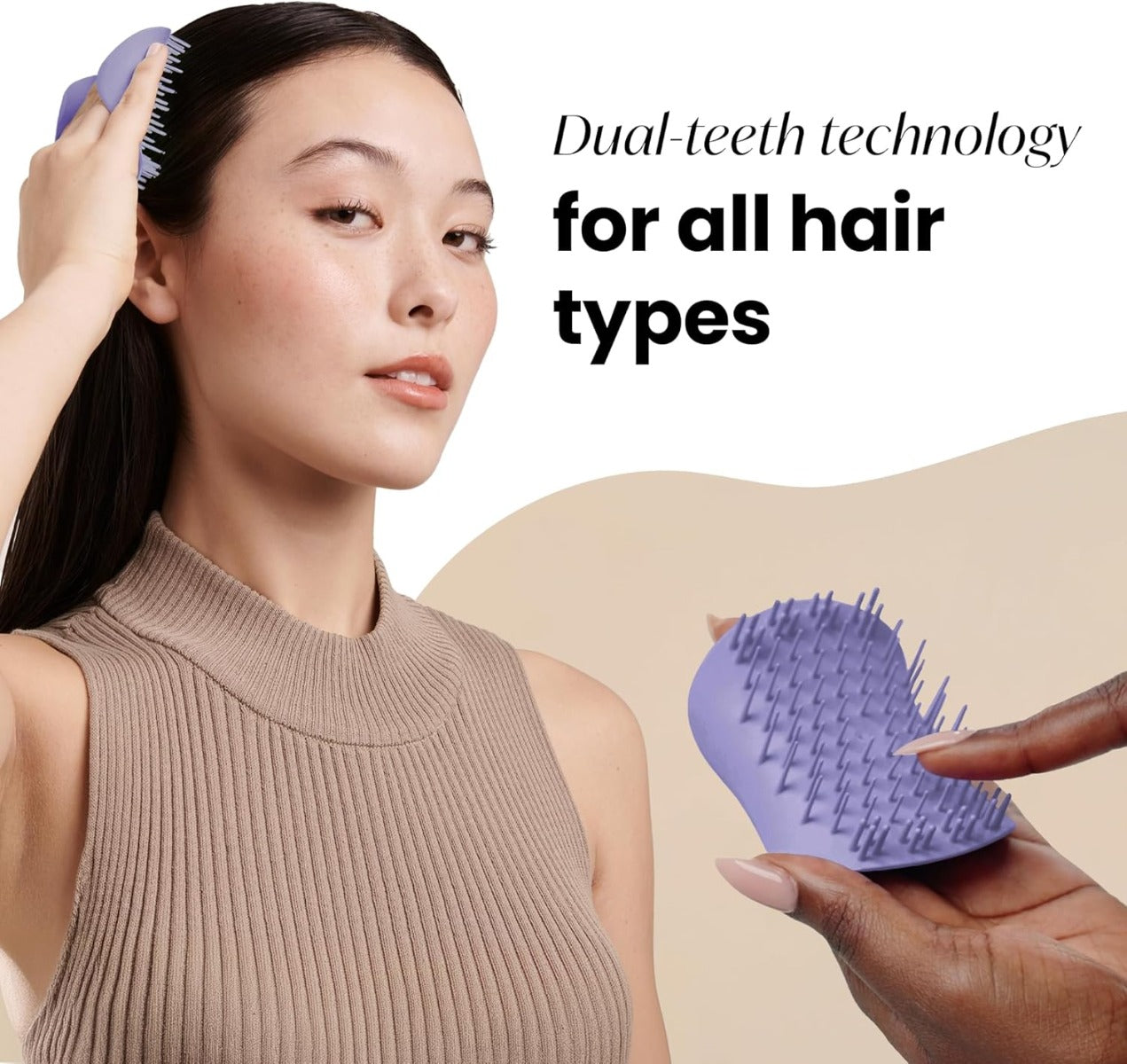 Tangle Teezer The Scalp Exfoliator & MassagerΒ is a multi-tasking marvel.Β Designed to help detox the scalp. Featuring dual-teeth, it scrubs away product build-up, dead skin cells and dirt, while stimulating blood flow to the scalp and giving you a relaxing massage. The winged design uniquely fits all hand sizes without slipping - even in water. Our first foray into wellness, the Scalp Exfoliator & Massager is the TLC-giving tool you need to add to your hair care ritual. Use in-shower while shampooing to get that scalp squeaky clean, or use it by itself or with oil on dry hair to indulge in a little self-care.
