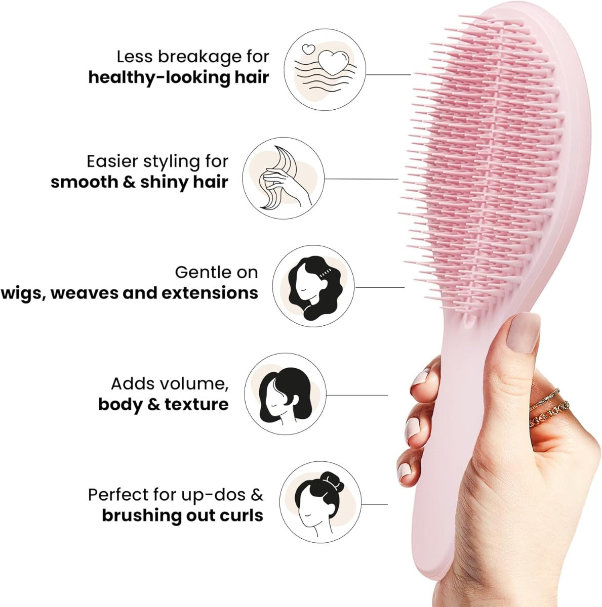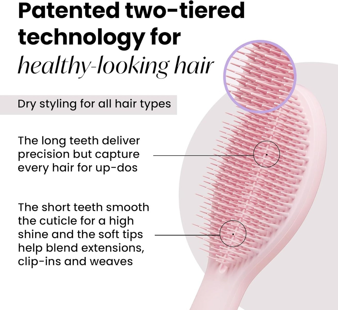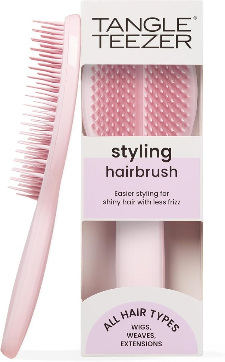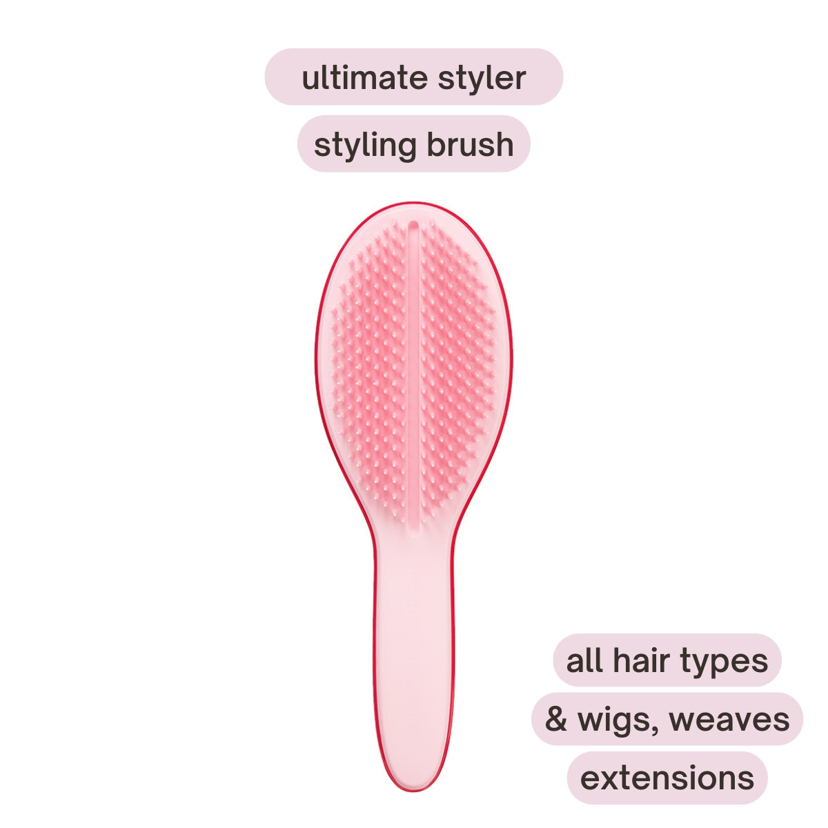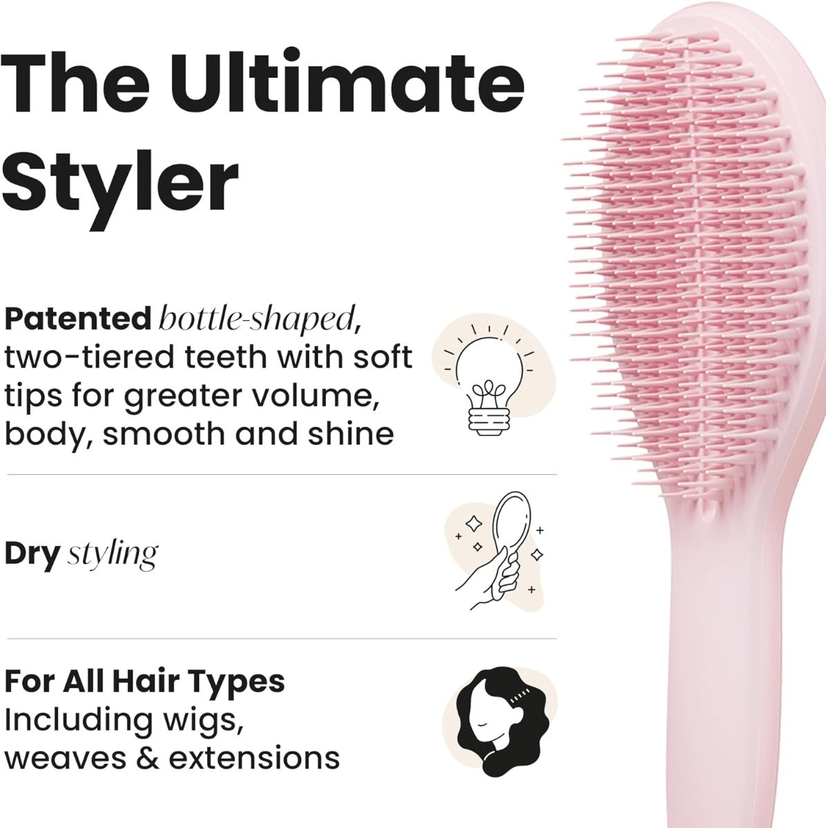 Tangle Teezer The Ultimate Styler Styling Hairbrush is designed to dry-style and effortlessly finish any look, perfect for all hair types, wigs, DOIwaeaves & extensions . New and improved from the Ultimate Finisher, featuring a thin and comfortable handle that gives you maximum control when creating updos, adding volume and texture or giving your hair a smooth and shiny finish. The unique bottle-shaped teeth have been developed to dry-style, meaning theyβre perfect to gently brush out curls and maintain and blend hair extensions, clip-ins and weaves. Perfect for all hair types, healthy hair is just a brush away.