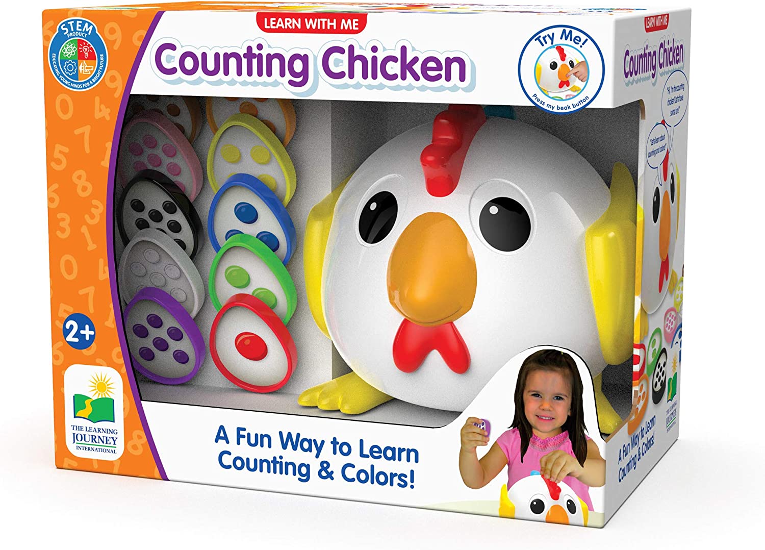 The Learning Journey Learn With Me Counting Chicken is a fun and interactive talking chicken that lets you put eggs in and out of it to learn about numbers and counting. Featuring two play modes to encourage children to count from one to 10, as well as recognize the numbers and colours on the eggs.