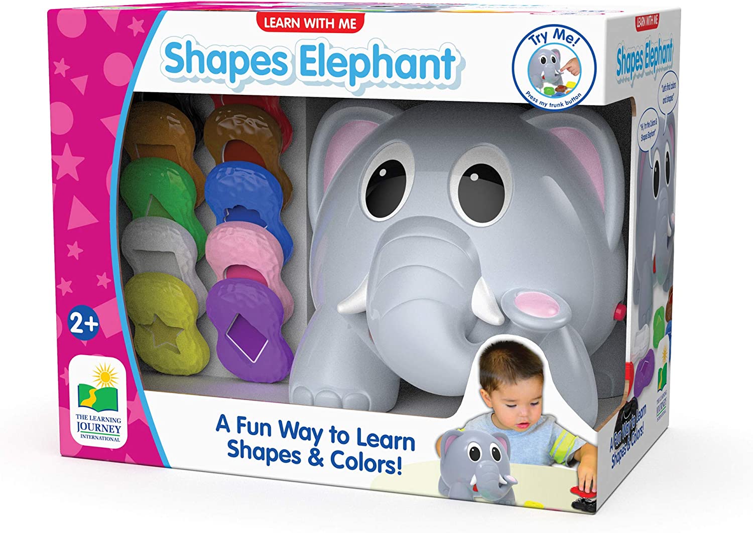 Learn With Me Shapes Elephant comes with 10 brightly-colored peanuts that feature multiple colors and shapes. Shapes Elephant comes with 2 fun play modes - Discovery and find It! Discovery mode lets your little learner discover the different colors and shapes on their own. Find It! mode asks questions about various colors or shapes.