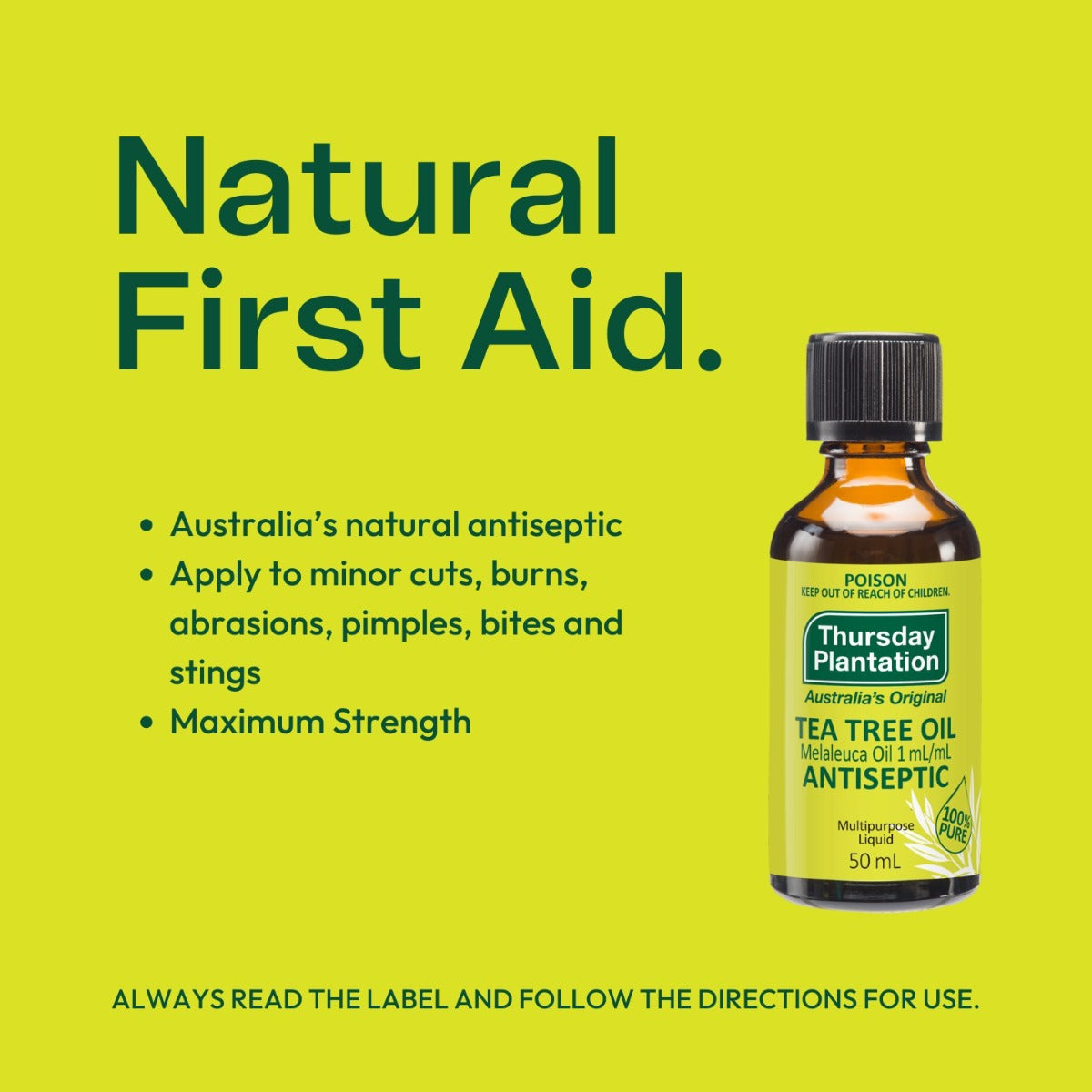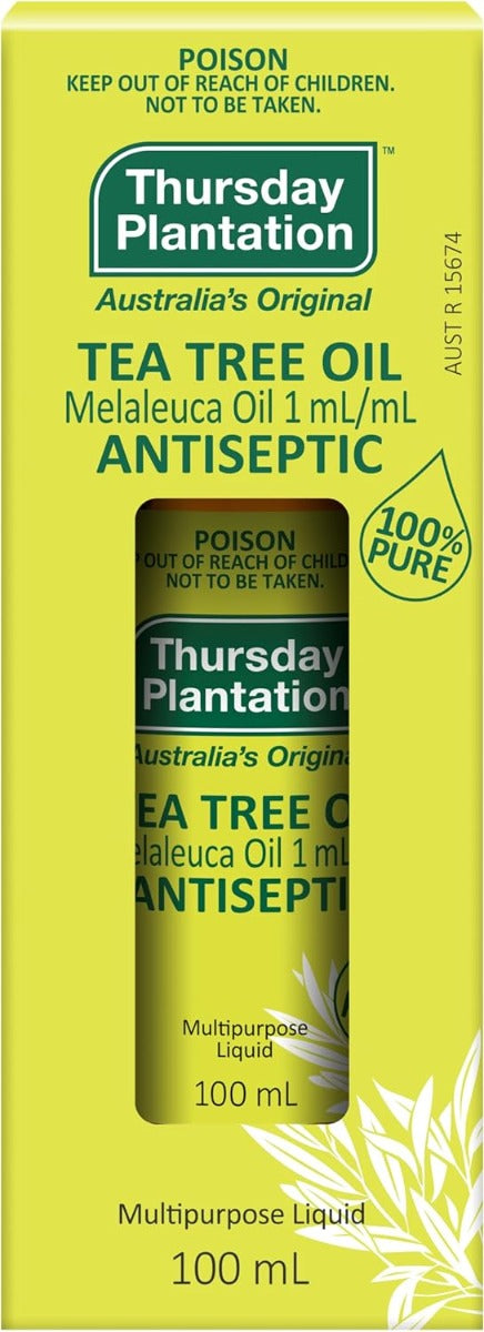 Thursday Plantation 100% Pure Tea Tree Oil is distilled from specially selected Melaleuca alternifolia leaves, a plant native to the coastal regions of northern New South Wales and south eastern Queensland, Australia. This 100% pure, 100% natural essential oil is a powerful antiseptic which inhibits a broad spectrum of bacteria and fungi and cleanses and protects skin abrasions.