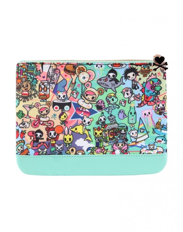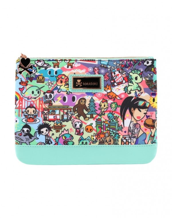 Tokidoki California Dreamin' Zip Pouch is a super cute multi-purpose zip top pouch! Removable Palette mascot key charm is also included. Explore the Golden State with tokidoki! Our California Dreamin' collection features some of your favorite characters as they celebrate Cali lifestyle. Whether it's SANDy carrying her surfboard to the beach or Mozzarella riding a trolley, this awesome print offers up a glimpse of laid-back Cali life. From backpacks and crossbody bags to patches and pouches, there's something for everyone in this dreamy collection!