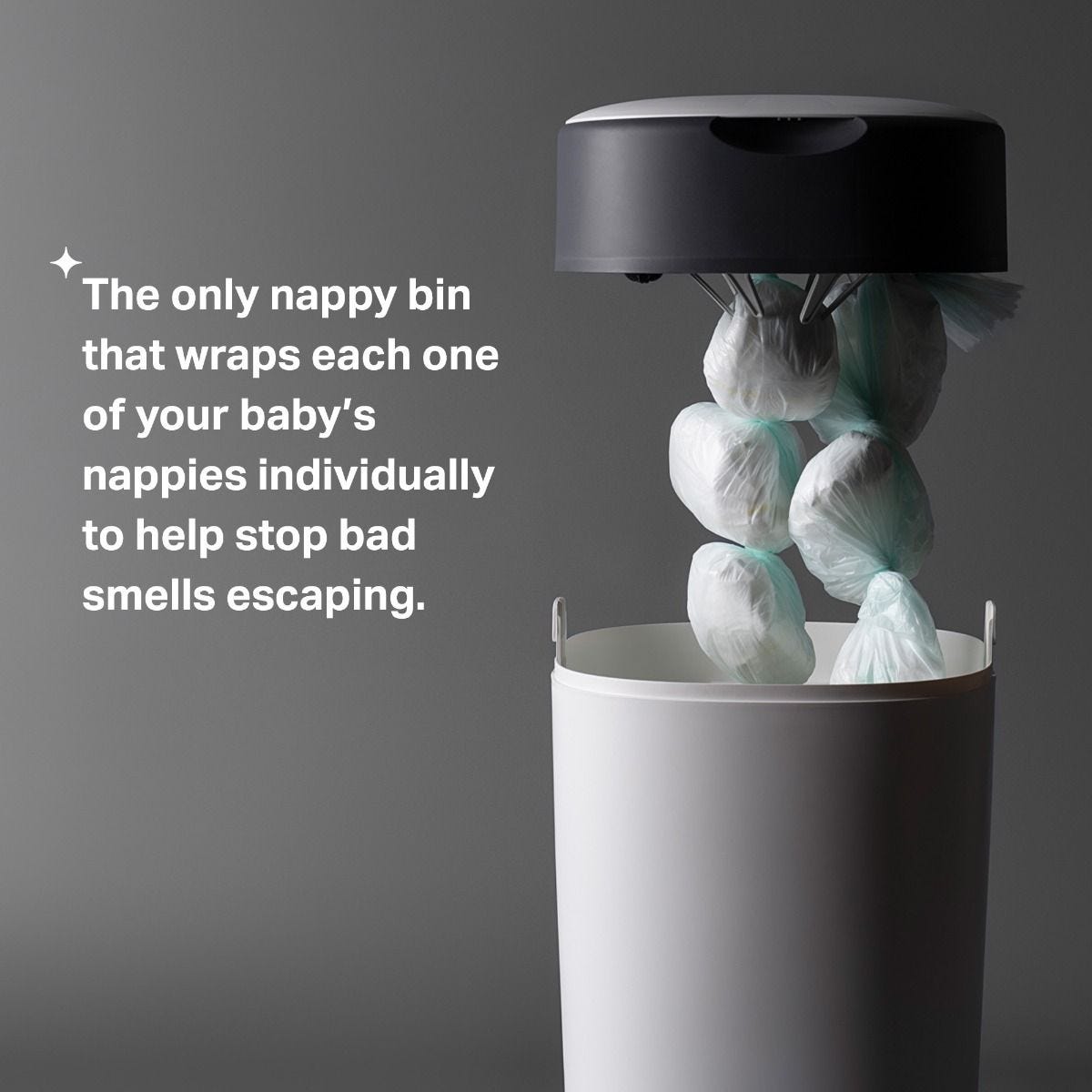 Nappies are individually wrapped so that the smell and mess canβt escape even when you open the lid or empty the bin.