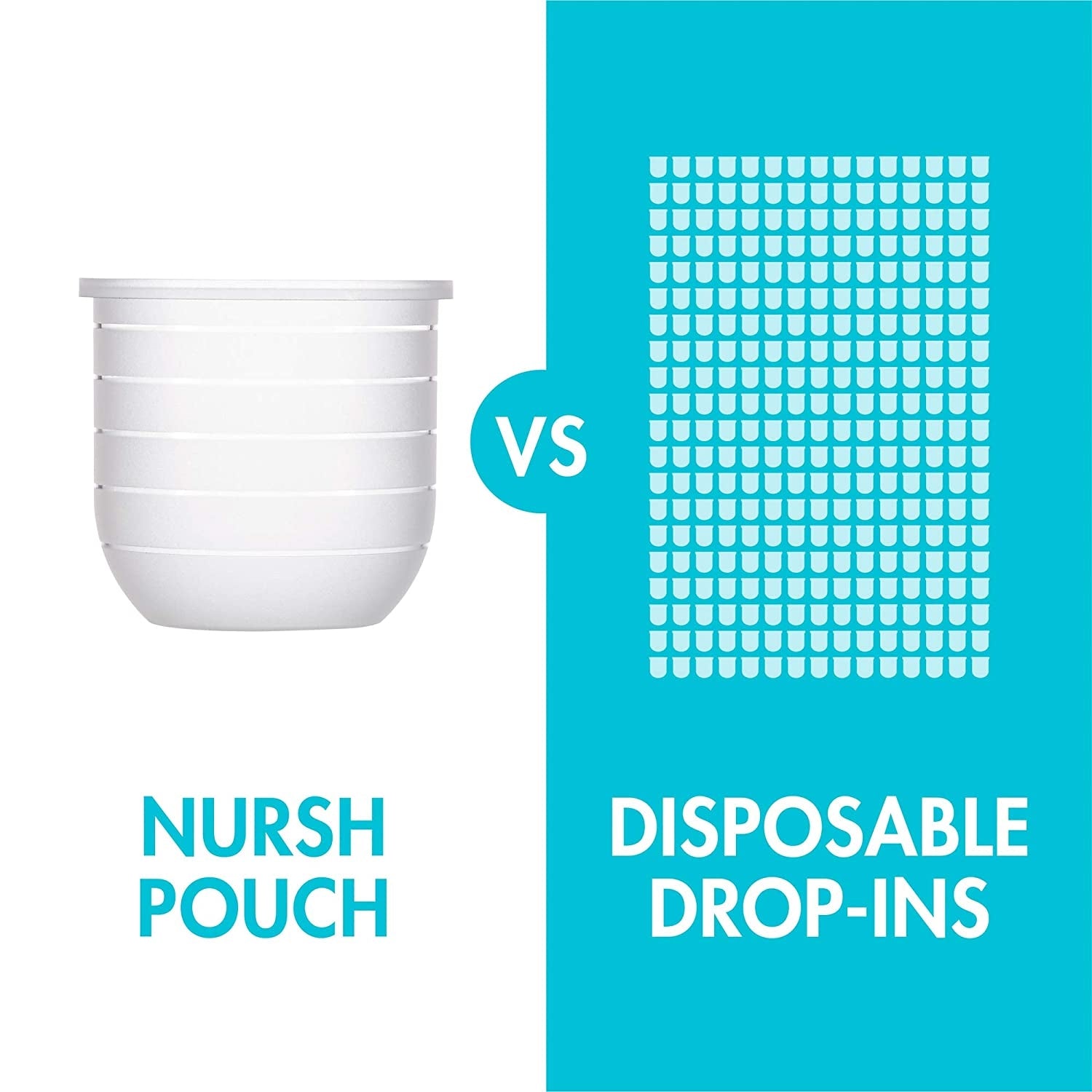 Unlike Comotomo, the NURSH system has reusable silicone drop-in pouches. This revolutionary bottle design features a silicone pouch that collapses as your little one drinks, without allowing gas-inducing air back in. There are no complicated valves and vents. Also, unlike Comotomo, the only thing your milk comes in contact with is 100% silicone.