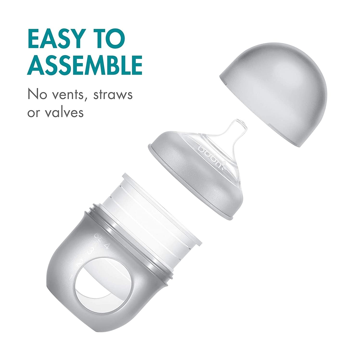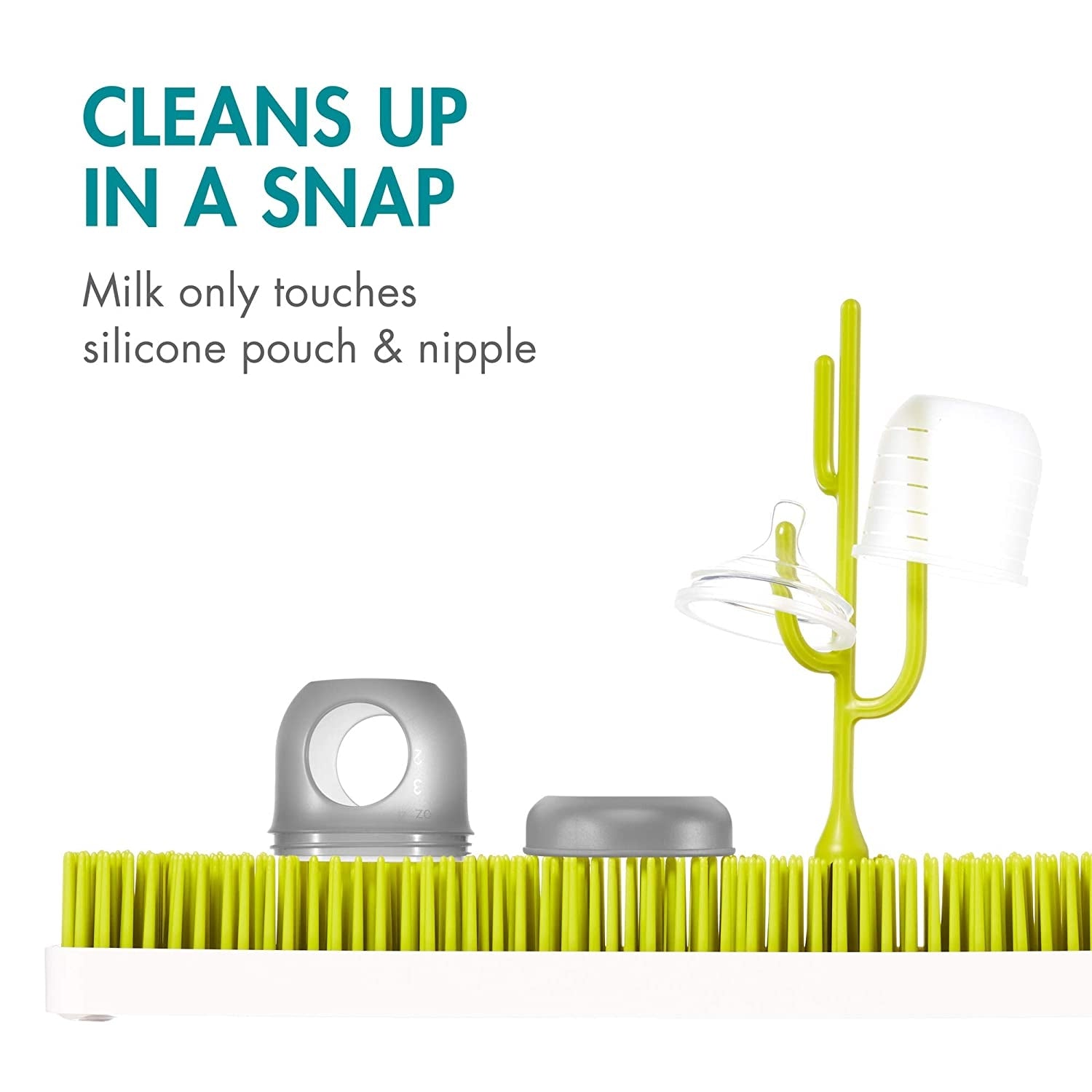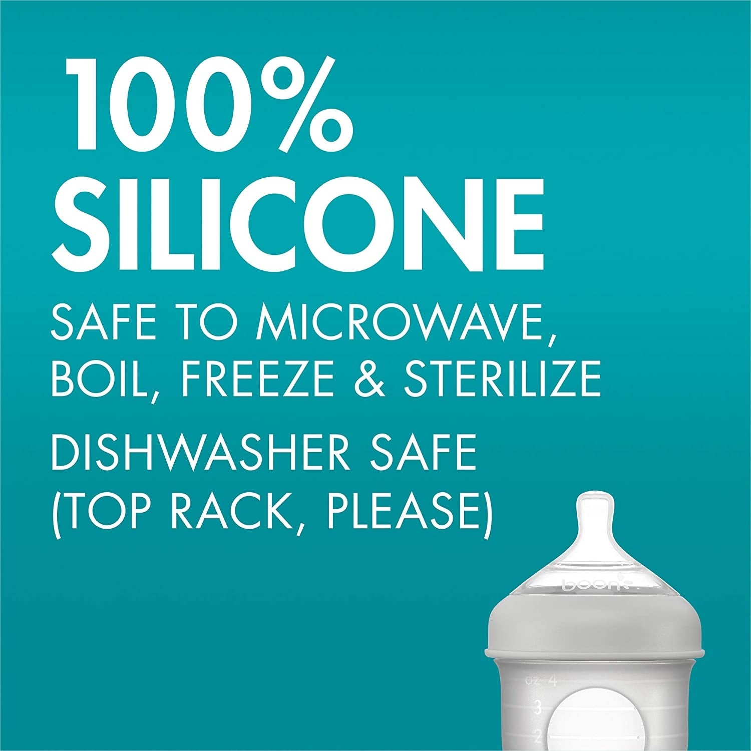 Boon Nursh Silicone Pouch Bottle is a revolutionary air-free feeding bottle design featuring a 100% silicone pouch that collapses as your little one drinks, squeezing out the nasty gas-inducing air that causes colic. No straws, vents or valves here—so it’s a snap to clean and assemble. The silicone can even be boiled, sterilized, microwaved, and frozen.