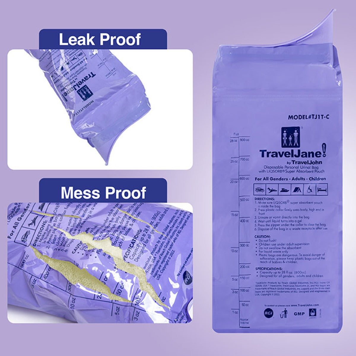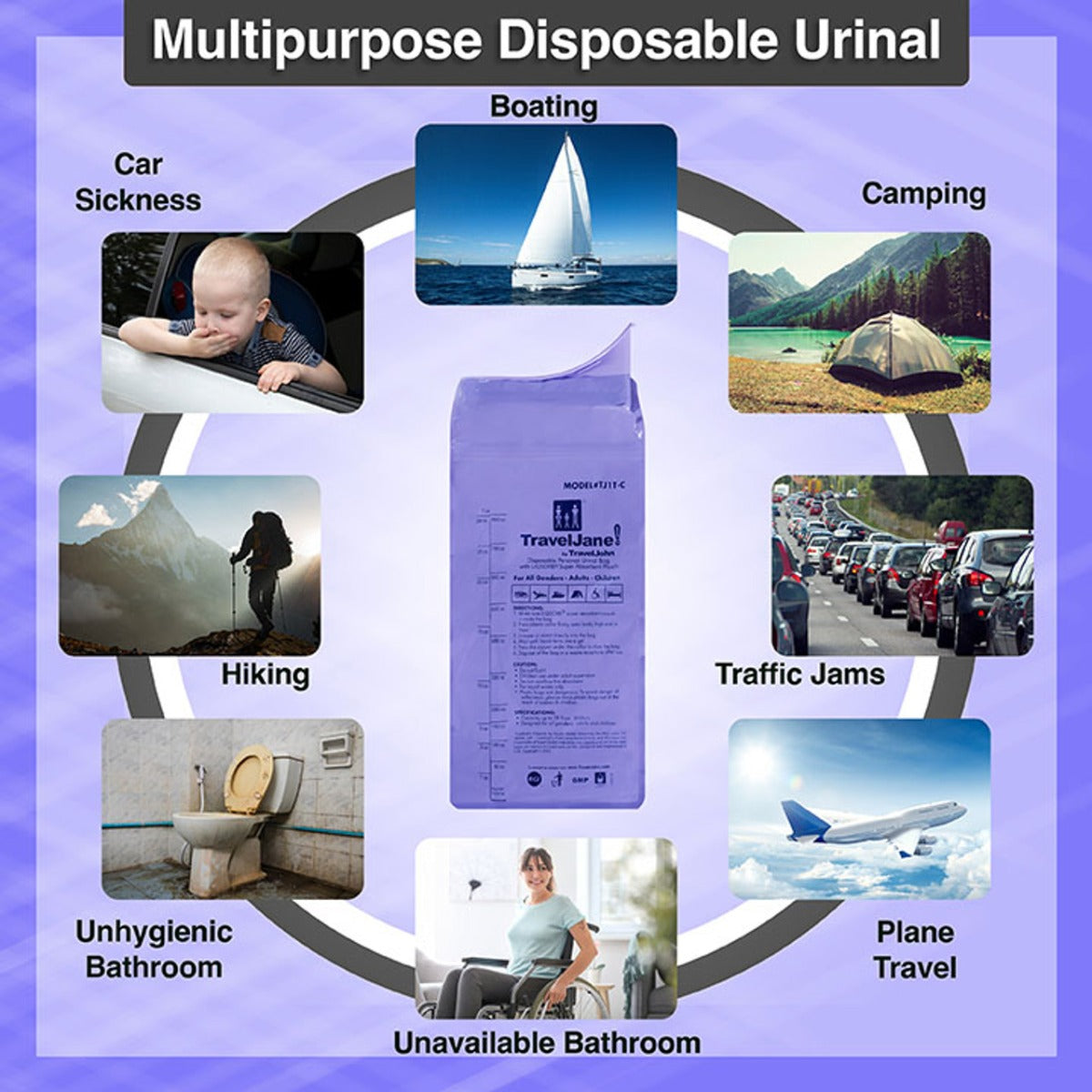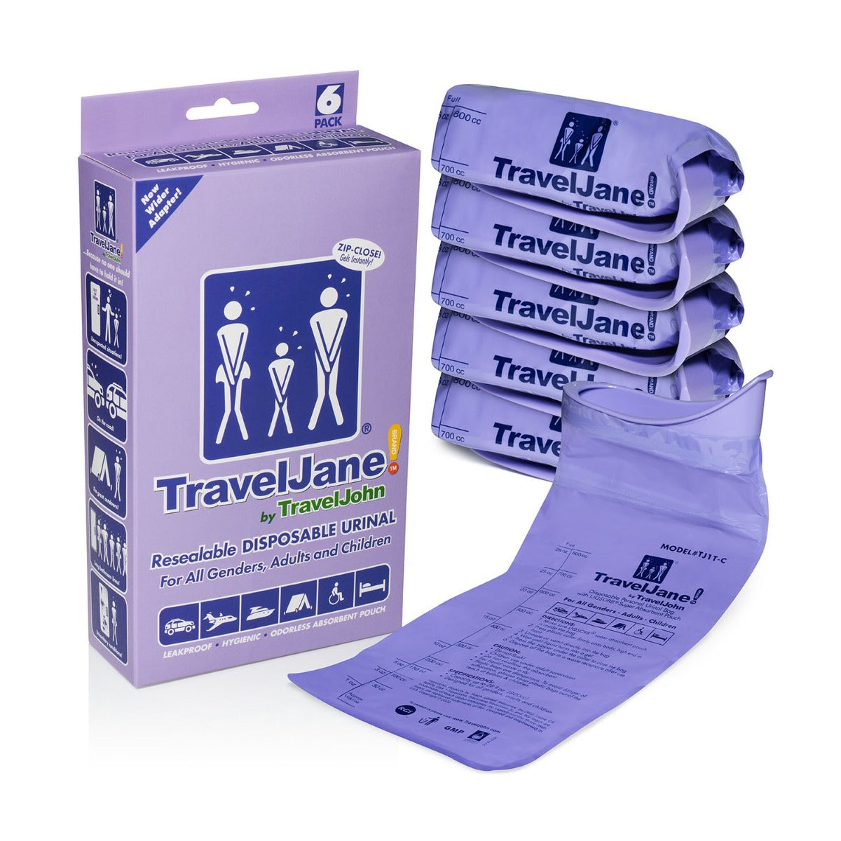 Travel Jane Disposable Urinal with Zip Resealable, 6-pack (TJ1T)
