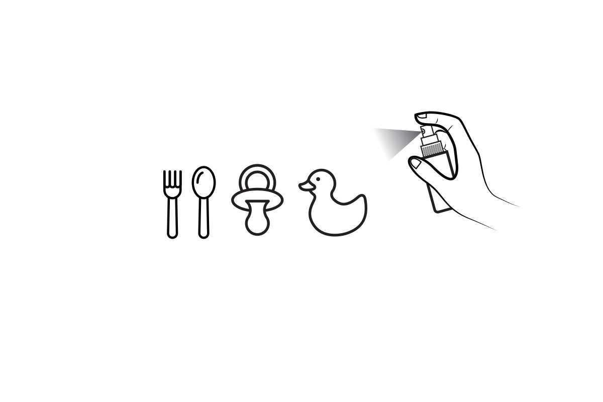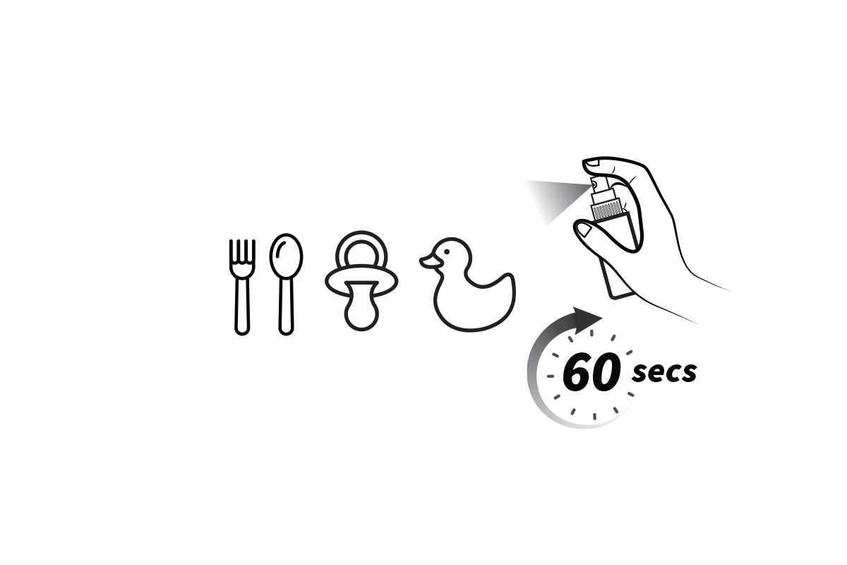 The Pocket Spray has many applications: directly onto hands, directly onto a pacifier that has fallen on the ground, even on utensils before eating. Use the pocket spray on any surface that needs disinfecting, simply hold bottle in upright position, spray on surfaces 4 to 6 inches away and wait 60-seconds.
