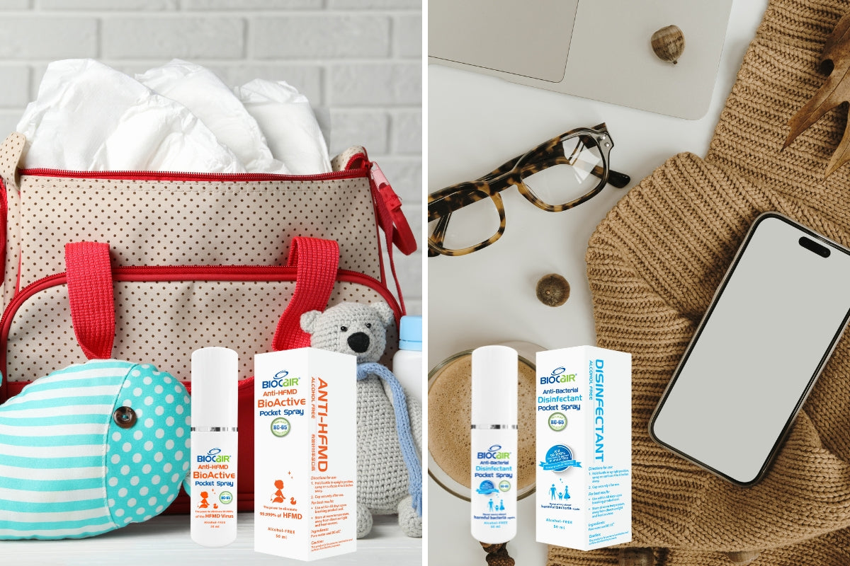 Meanwhile, the BioActive Pocket Spray is specially formulated for children, making it suitable for use on their hands and items like toys, strollers, and high chairs, protecting them from common germs and viruses. This Combo Twin Pack ensures that you and your family stay safe and protected with convenient, effective, and gentle sanitization solutions.
