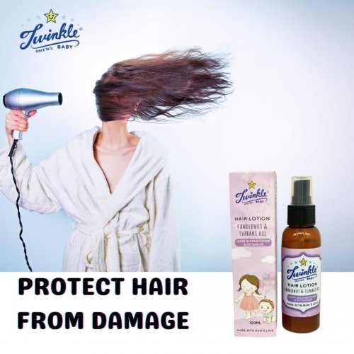 Twinkle Baby Lavender Hair Lotion is a rich blend of natural ingredients: Candlenut, Moringa Oil and Camellia Japonica Seed Oil for healthy hair and scalp maintenance, it enhances circulation to stimulate toddler’s hair growth, so that it will be fuller, stronger and more lustrous. By applying Twinkle Baby Hair Lotion Detangler daily helps to strengthen hair roots, nourishes the hair follicle and retain the moisture on the toddler scalp. An appropriate blend of Lavender Mailette essential oil also helps to alleviate restlessness, helping baby to have a good night’s rest too.
