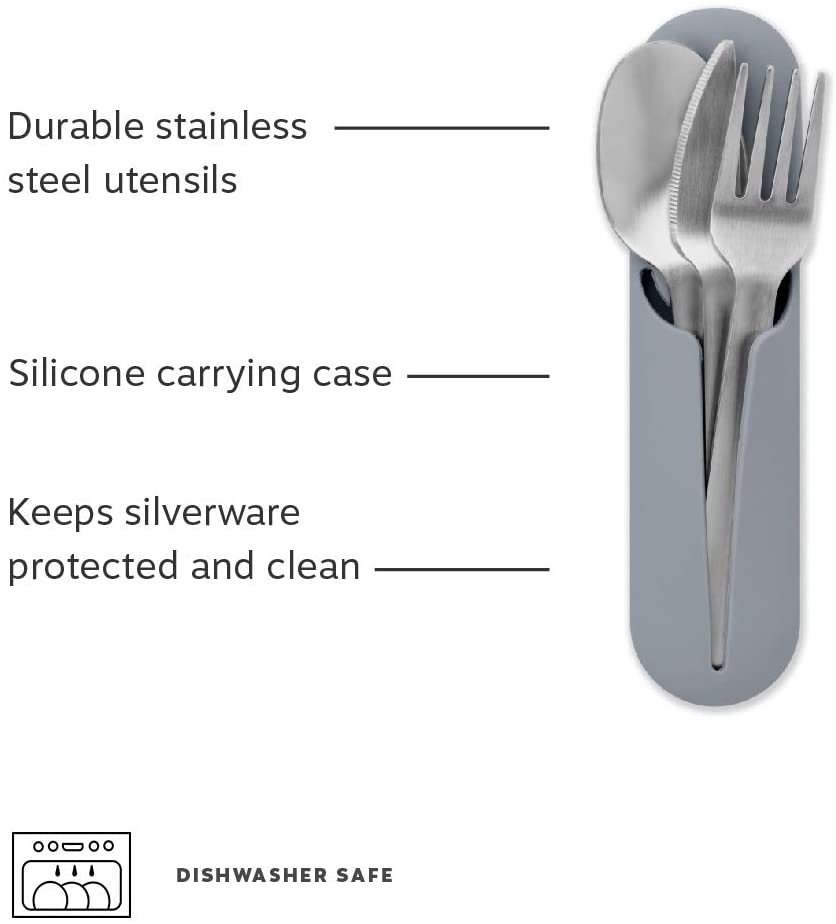 W&P Porter Utensil Set is a reusable stainless steel fork, spoon and knife set. This compact set of stainless steel silverware keeps a slim profile, while the silicone carrying case helps things stay clean in transit. Durable and lightweight, this compact flatware set is designed for daily use. The adult-sized utensils fit in the carrying case to keep cutlery clean in your bag.