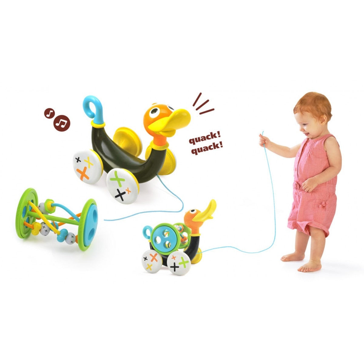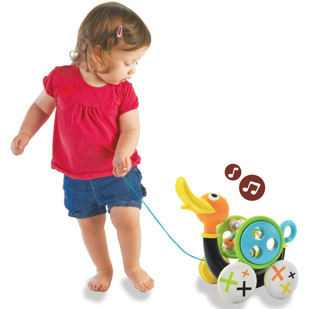 - Introducing cause & effect processes – when your toddler begins to walk, let him hold the pull string and encourage him to pull the duck.