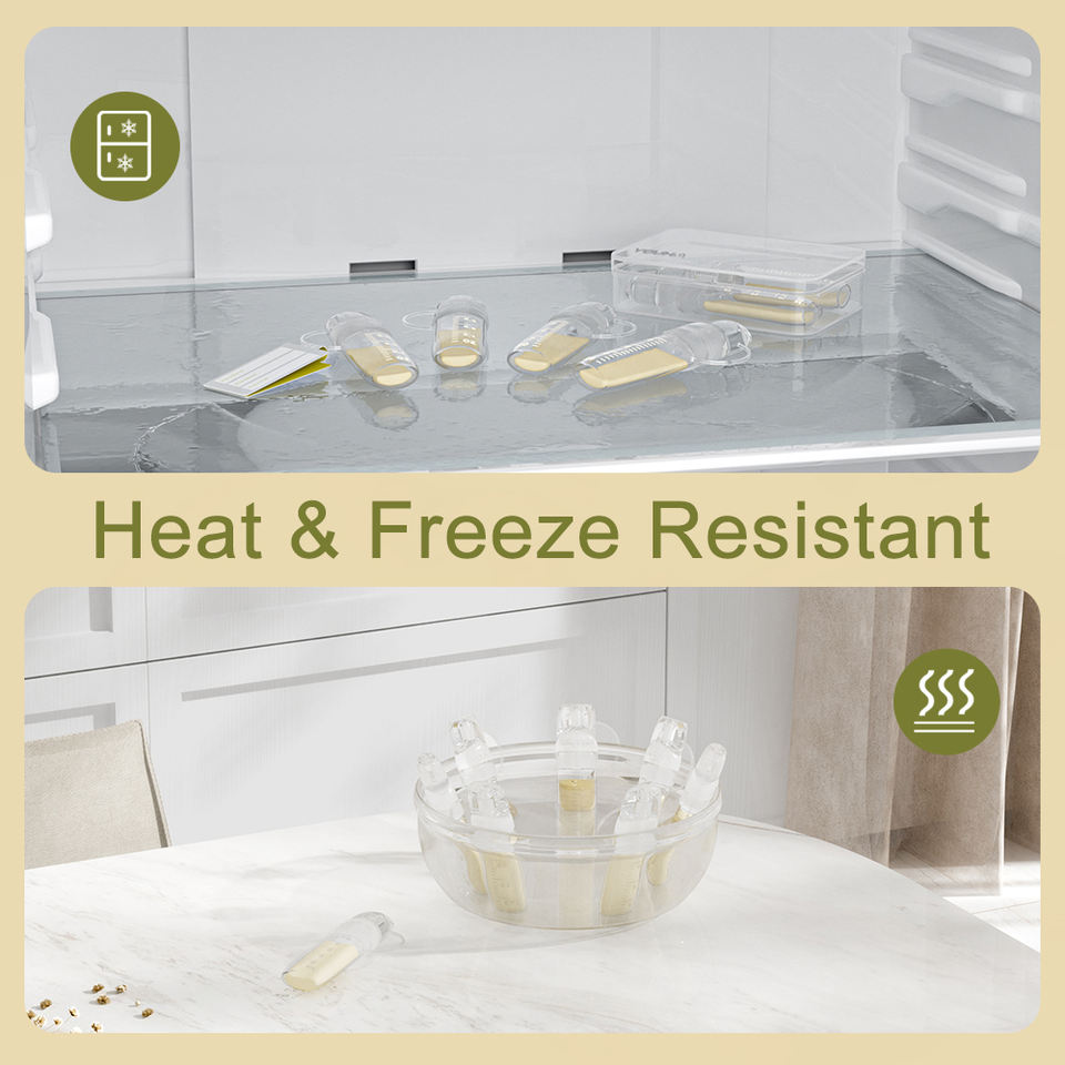 - Heat & freeze resistant – suitable for sterilizing and storing in fridge/freezer