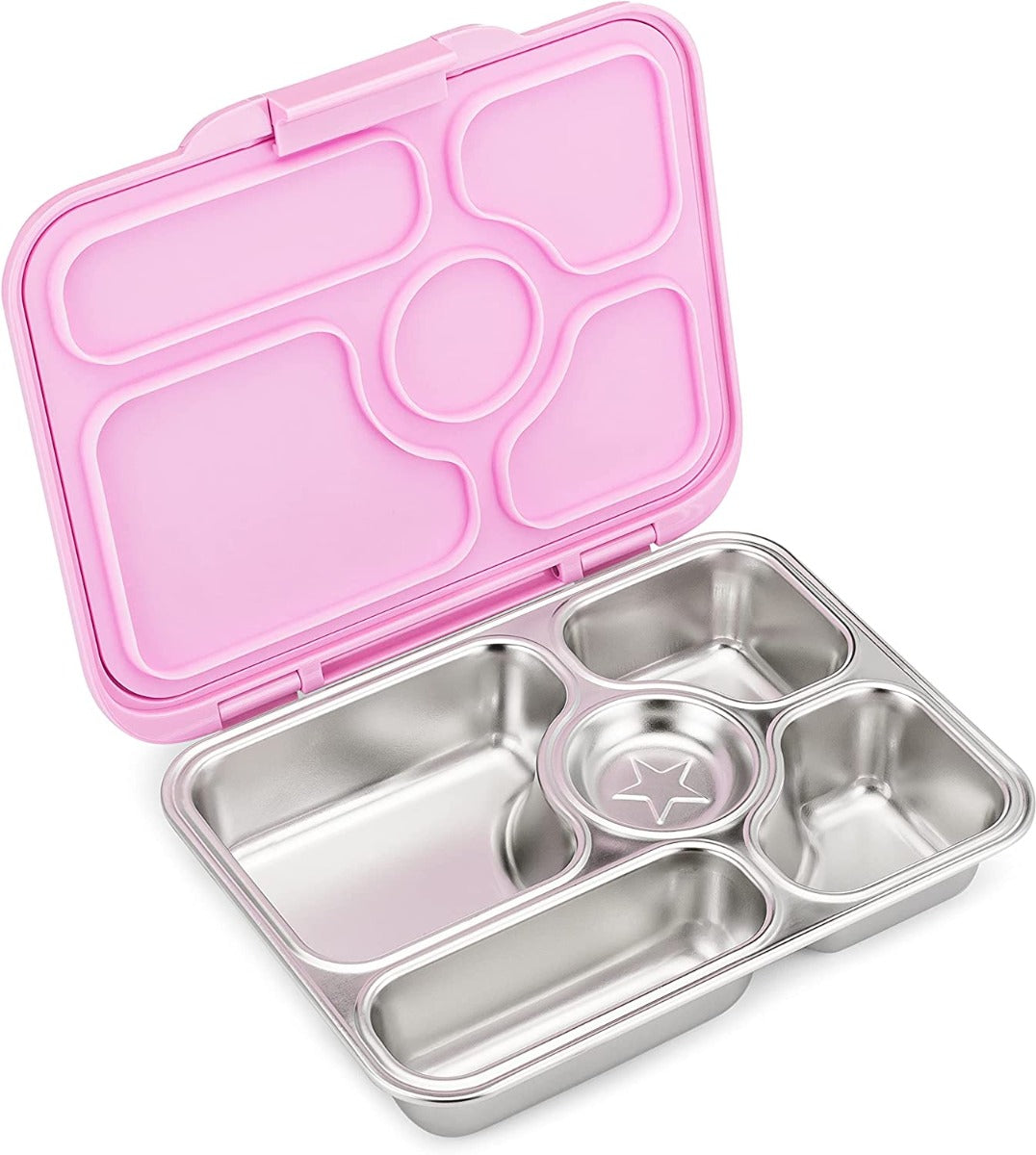 Yumbox Presto 5-compartment Lunch Box is a 5 compartment meal box, Leakproof 18/8 grade Stainless Steel Bento box that is designed for kids and adults. The 5 compartments stainless steel tray makes it easy to pack a nutritious, organized and colorful lunch for work, school, sports and travel. Featuring an easy-to-open and close latch makes Yumbox a perfect lunchbox, even for toddlers!