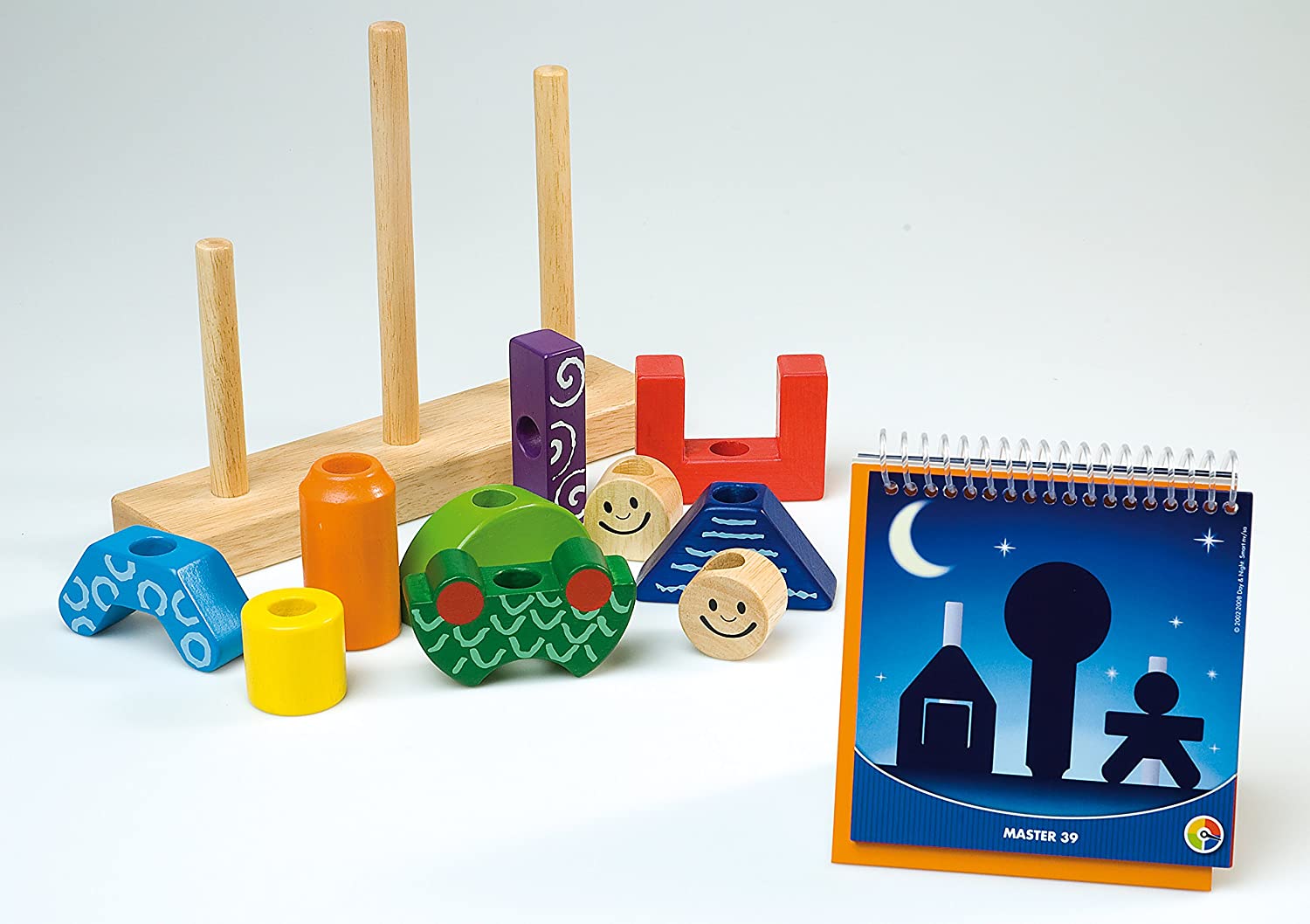 - IncludeΒ Wooden base, 10 colourful wooden blocks, booklet with challenges and solutions