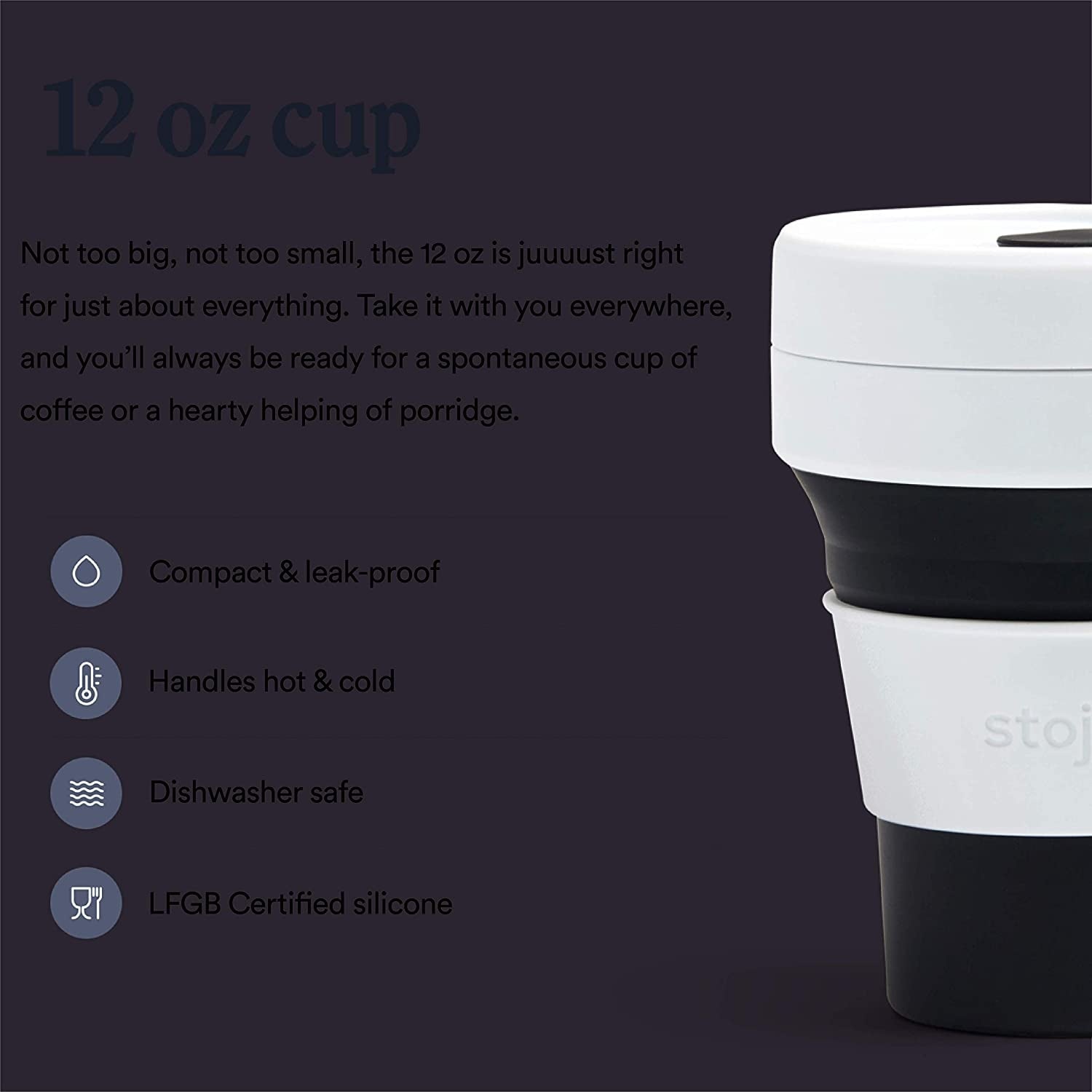 Stojo Silicone Collapsible Cup is an ultra-portable, leak-proof reusable cup. Designed to easily go everywhere, Stojo expands to hold your drink and folds into a leak-proof disc when empty. Simply collapse and store your reusable travel cup. Just collapse and go! Not too big, not too small, the 12 oz is juuuust right for just about everything. Take it with you everywhere, and you’ll always be ready for a spontaneous cup of coffee or a hearty helping of porridge.